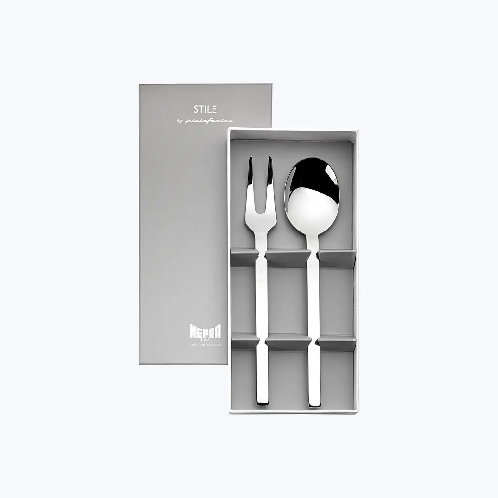Stile Serveware is made of the highest quality 18/10 steel, 4 mm thick, very durable, and incredibly ergonomic for dinner parties and everyday use. The perfect balance between style ad function, this high-quality Italian serveware brings elegance to the table without sacrificing functionality. Dishwasher and food safe. Created in 1947, Mepra is a family-owned and operated company with a worldwide presence in flatware, cookware, and stainless-steel products. Today, Mepra flatware and kitchenware appear on the tables of the most prestigious hotels, award-winning restaurants, and artisanal-centered homes. Bring the magic of three generations worth of Italian traditions, designs, and lifestyles into your kitchen and dining room today. Stainless Steel plating features a special vintage process that gives it a rustic, warm, and elegant appearance while still being durable and inoxidizable coating. Winners of the 2020 Good Design Award, the Oro Nero, Champagne, Oro, and Ice Oro Collections are perfect for the most refined and stylish homes with their pure lines and harmoniously light forms. Ice Bronze, Champagne Ice, Ice, and Ice Oro Nero are coated with a PVD Titanium Coating that is tested and guaranteed for more than 3000 washes in a commercial dishwasher. The special Titanium Plating was originally developed by NASA, resulting in a durable and inoxidizable coating like non-other.