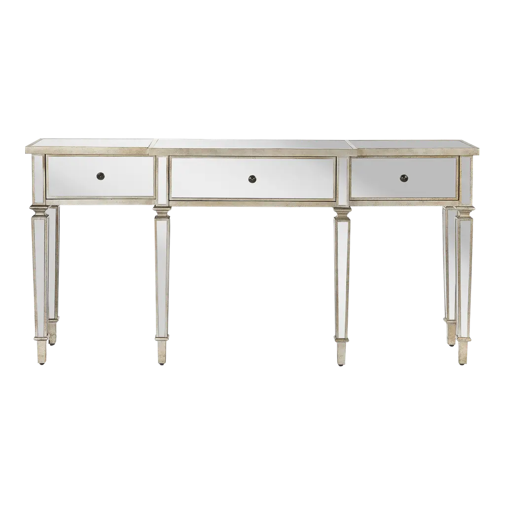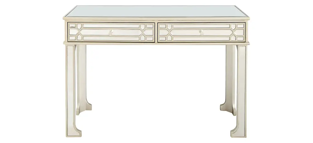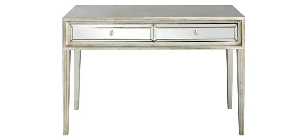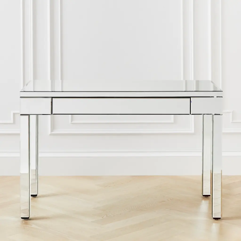 Our mirrored Studio desk is a simple and classic design that will complement any décor in your home. Extremely stylish and functional, it is perfect for an entryway, behind your sofa, buffet table and ideal for keeping your home office organized. Perfect for small spaces, the Studio desk includes a full extension drawer, and pre-drilled holes for device cord management.