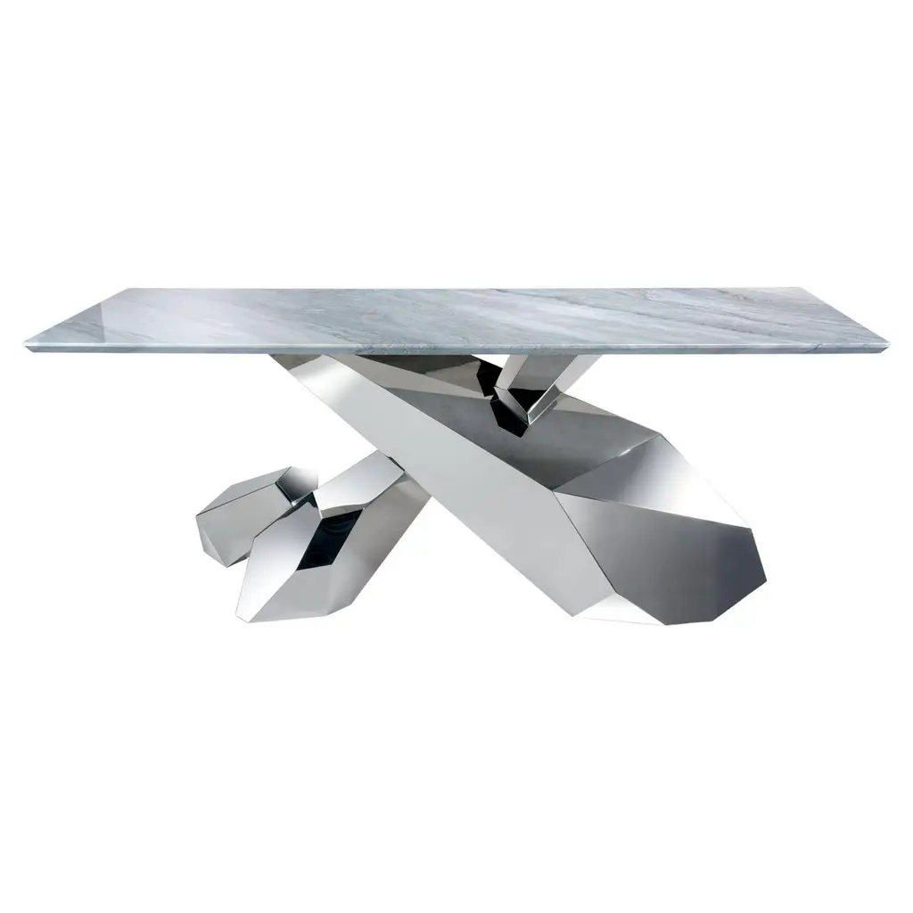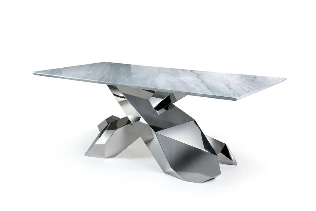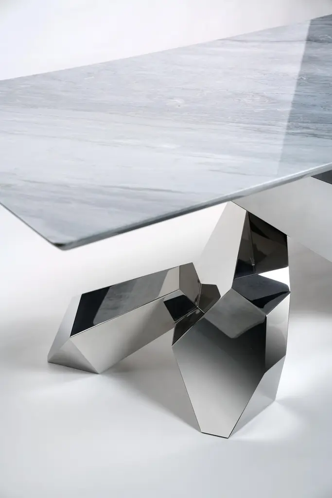 The table 'Gallio' is an important desk with structure in mirror polished stainless steel and top in grey Versylis marble. The structure is inspired by a formation of crystals of Gallium and is made entirely by hand, from welding to polishing.Table dimension: L 200 x W 100 x H 75 cm. Dimensions are customizable. Limited Edition of 30.Each table is hand signed and numbered by the artists (engraved), 100% handmade in Italy and comes with a “Certificate of Authenticity”.We were inspired by Gallium, a rare metal, omnipresent in the technology that surrounds us, a tenacious appearance with a fragile soul, magical and changeable when held in the palm of one hand. We have portrayed it in an artwork that preserves its beauty and gives us a taste of the future, which perhaps is already present.The artworks by Barberini & Gunnell are regularly shown at international art fairs, such as PAD London, PAD Genève, PAD Monaco, Salon Art and Design New York, Art Miami.IMPORTANT INFORMATION REGARDING SHIPPING:Please contact us for an independent shipping quote as we provide high quality shipping at competitive prices due to our frequency of shipping, relations with international shipping companies and the possibility to organize directly from Italy.We take care of the entire customs procedure and paperwork. On request we organize a white glove delivery and installation of the artwork inside of the property of the client. All shipments are ALL-RISK insured.We carefully pack all artworks in strong wooden crates to ensure safe transport. This service is done directly in our atelier and is complimentary. All of our artworks travel with a shock watch system in order to monitorate rough handling by shippers and movers.