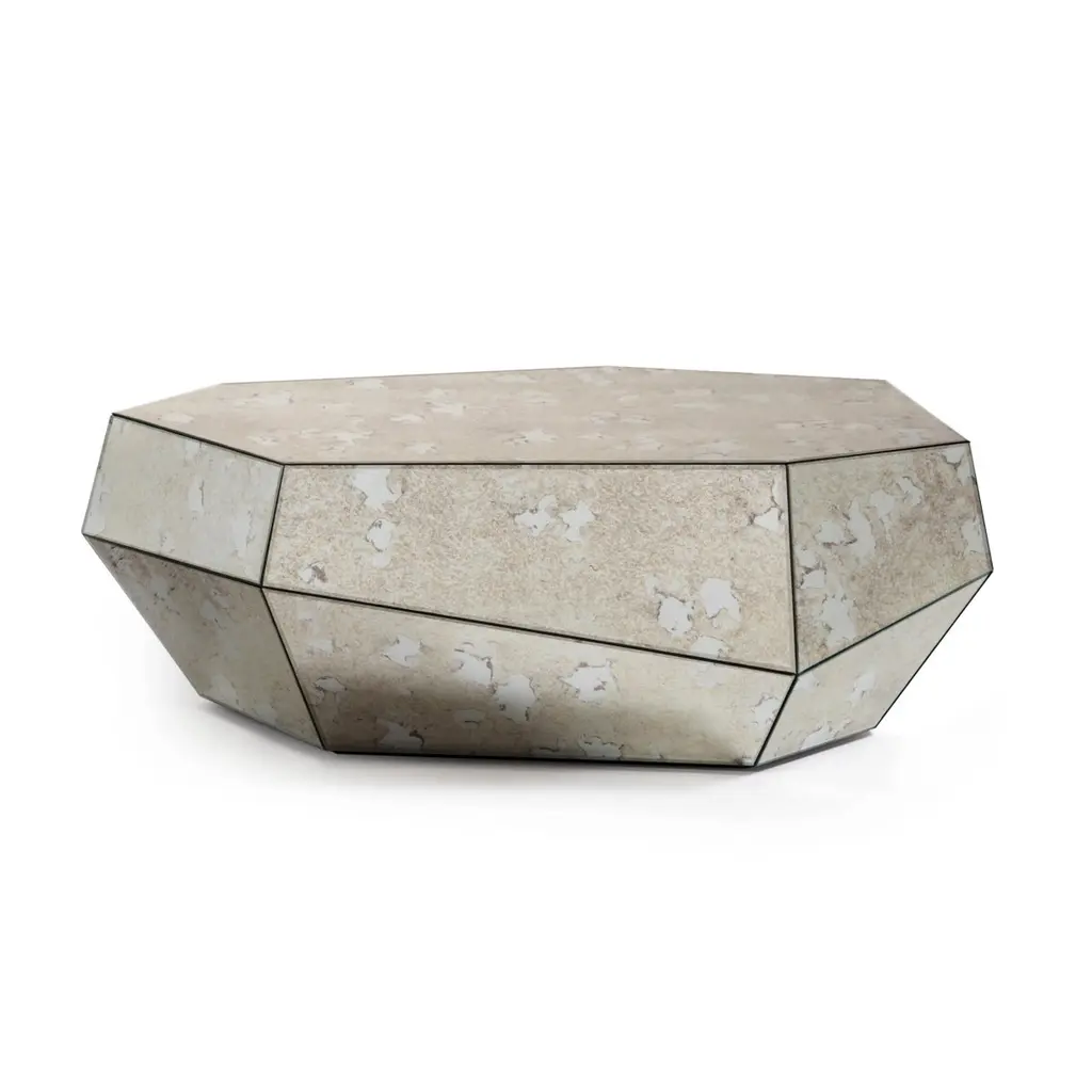Three Rocks Low Coffee Table, Aged Mirror, Insidherland By Joana Santos Barbosa