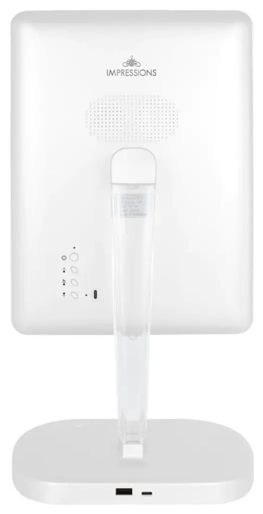 Impressions Vanity introduces Touch Pro 2.0 makeup desk mirrors. The desk smart mirror comes with touch control and three color temperature LED lighting. This is the must have accessory for every makeup enthusiast and tech savvy individual. In todays fast paced world, our daily routines are busier than ever, and you deserve a beauty companion that keeps up with your lifestyle. Thats why you need our desk makeup mirror with lights. With its touch control functionality, you can effortlessly adjust the brightness of the built in LED cosmetic mirror to ensure flawless makeup application, even in dim lighting. But thats not all this vanity mirror with lights is a multi functional marvel. It comes equipped with a smart powering base, so you can power up your phone while you perfect your makeup quickly. And if you like to groove to your favorite tunes while getting ready, our lighted vanity mirror also boasts music connectivity, allowing you to stream music and even answer phone calls hands free. Customize the vertical and horizontal standing to your preference, making it perfect for any space, from the bedroom to the dorm room or vanity desk. Elevate your makeup game and tech savvy lifestyle with our stand up mirror its the perfect blend of cuteness, convenience, and functionality. Get yours today and make every makeup routine a delightful experience.Features:TRI TONE LIGHTING: This luxurious cosmetic mirror with stand combines three color tone LED lighting to enhance your beauty time experience, and adjust your desired light ambiance to have a glamorous makeup outcomeSMART POWER UP: Stay connected while getting ready with the built in power up the base of our vanity desk mirror with lights, it ensures your phone is always within your reach and you have peace of mindMUSIC CONNECTIVITY: Enhance your makeup experience by connecting your device with the attached music speaker of this glamorous table mirror. Stream your favorite tunes and even take calls hands free with its microphone360-DEGREE SWIVEL: Tailor your vanity makeup mirror for your desk to your preferences with its 360 degree swivel and tilt, this adjustability ensures you find the perfect angle for your beauty routine