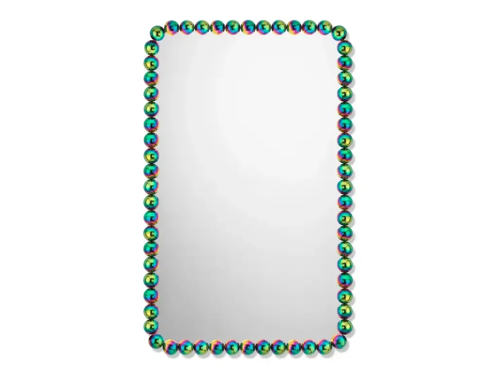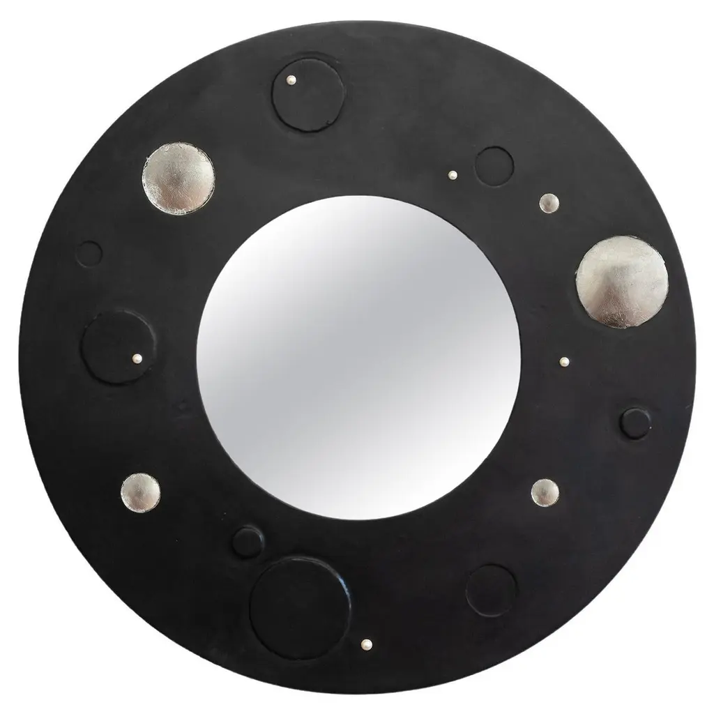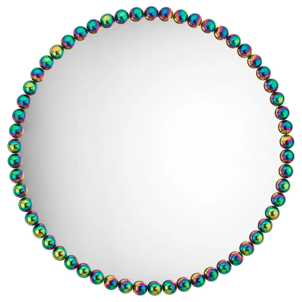 Decorating your space just became a whole lot more exciting! The Rockstar mirror boasts a matte black finish complemented by iridescently colored studs. Whether used alone or with its matching occasional tables, the Rockstar is sure to add stylish flair to your space.• Handmade by skilled furniture craftsmen • Dimensions: 27.5"W x 4"D x 27.5"H• Mirror dimensions: 17.8"DIA• Features colorful accent studs• Made in India
