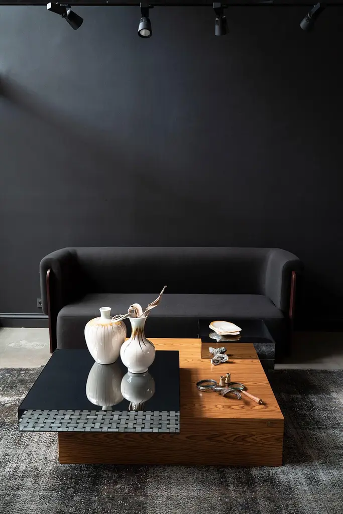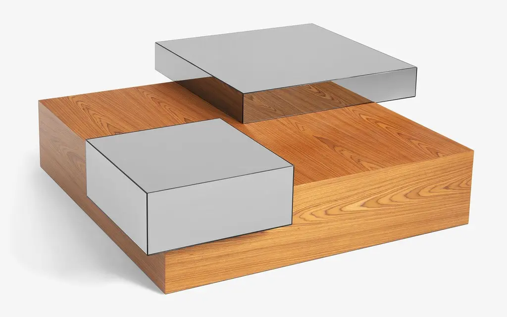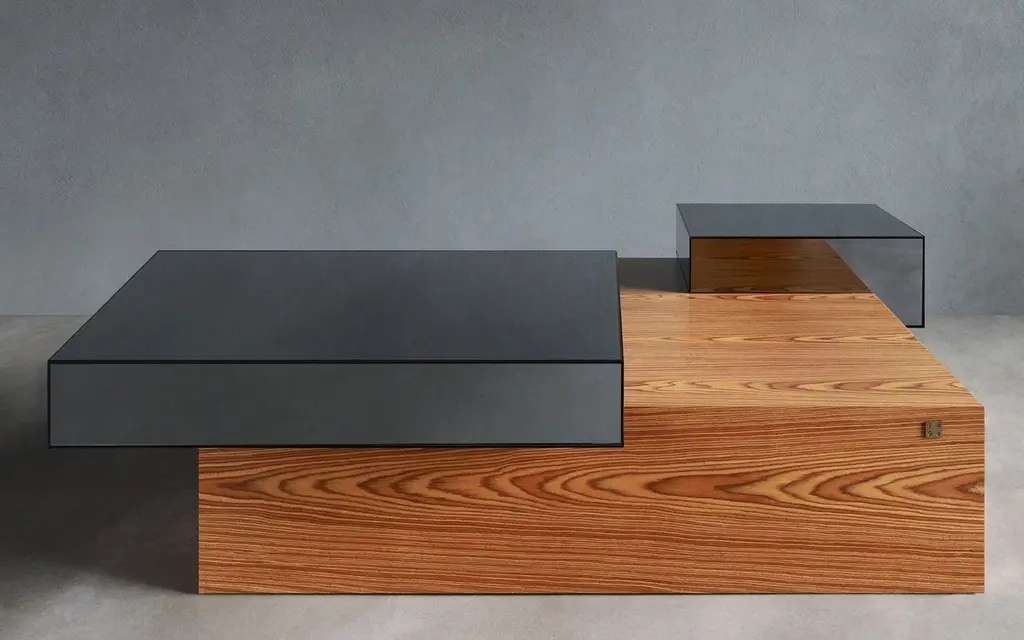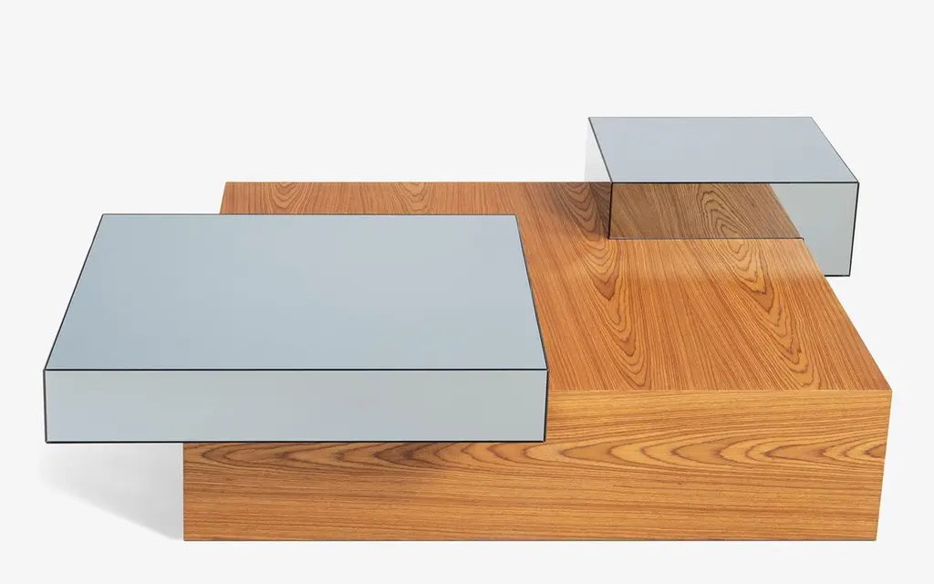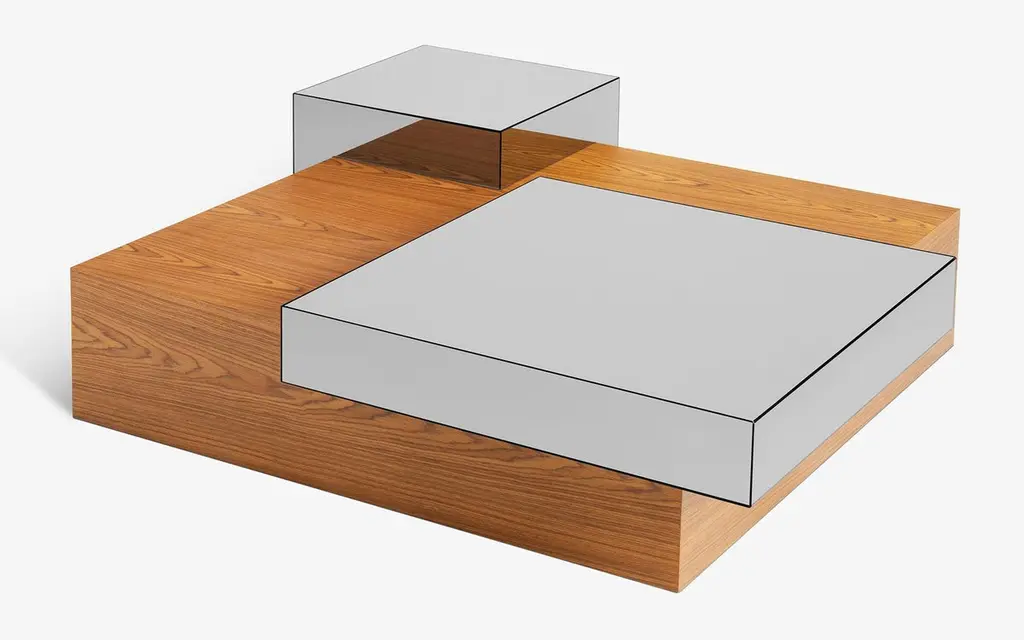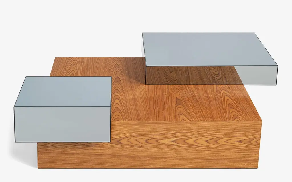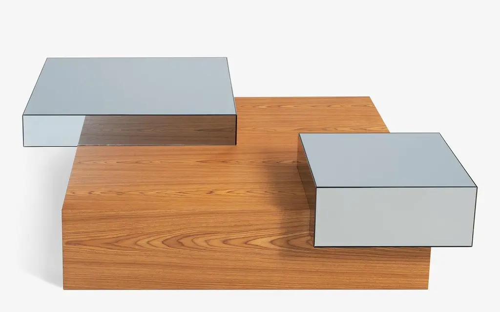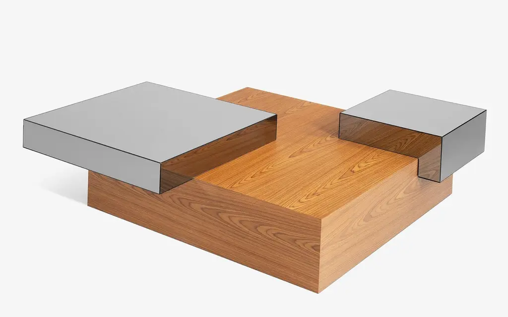 A favorite of geometric form fans, TUNÇ COFFEE TABLE draws attention with its use of different materials and color scale. Its design, which creates a sense of movement and exploration, is the meeting point of quality and elegance with the visuality of oak and black glass. Adding dimension to your living space with the mirror effect created by the glass, TUNÇ COFFEE TABLE also displays a balanced stance with the warmth of the wood.Its bold geometric design creates a sense of movement, depth, and exploration, while the reflective mirror surface introduces light and dimension into any space. The warmth of walnut balances the modern edge of the smoked glass, resulting in a timeless design that blends quality craftsmanship with contemporary elegance.Perfect as a living room coffee table, this designer piece elevates interiors with both style and function. Whether paired with minimalist décor or eclectic arrangements, the TUNÇ Coffee Table stands out as a luxurious addition, offering durability, sophistication, and a distinct visual character.Materials: 1st Class Walnut Veneer, Smoked MirrorPlease contact us for customization – size, finish, or material options can be tailored to your needs.