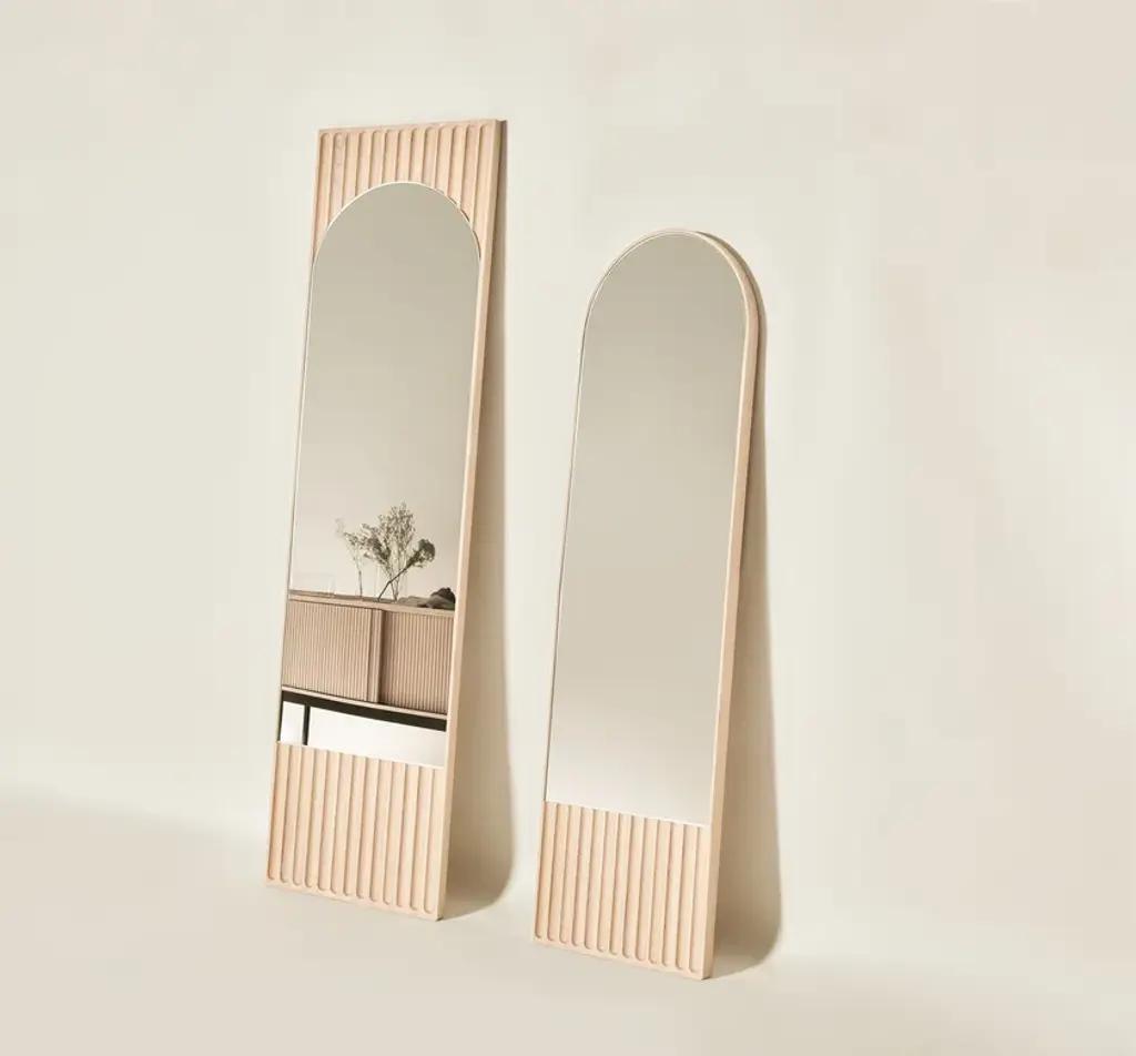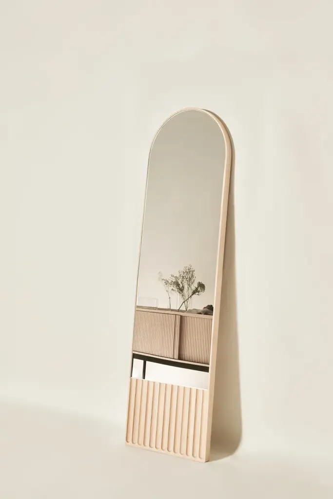 In Tutto Sesto, contrast is balance. A pair of mirrors where the lightness of the frame is counterpointed by the materic heaviness of the patterned base.Tutto Sesto mirrors are part of the 2023 collection of contemporary solid wood furniture. Born from the dialogue between Dale Italia and Cono Studio, the range is defined by essential aesthetics, in tune with current trends without losing touch with the craftmenship values of our Made in Italy. The mirrors stand out for the contrast between the lightness of the frame and the heaviness of the base. The milled pattern creates a decorative motif through plays of light and shadow, which change according to the location. The surface also enhances the natural quality of white ash wood, as an invitation to experience it with all the senses. Material: White Ash solid wood Finishing: Natural, acrylic finish Brown, acrylic finish Black, acrylic finishFrame: Made through the traditional technique of solid white ash wood processing. Exposed millings. Maintenance: For cleaning, we recommend a soft cloth moistened with water. Avoid aggressive alcohol-based detergents.Dale is constantly looking for new perspective and inspirations. In collaboration with the designers from Cono Studio, we have produced a collection of contemporary furniture in solid white ash wood. A new language for Dale Italia, with an essential and current aesthetic, capable to create warm, intimate and welcoming ambientes that feel like home. Discover the new range of white ash solid wood furniture with a contemporary design. Essential lines, contrasts and rhythms create stylish and exclusive elements. Monolithic and geometrical shapes create balances between solids and voids. In an warm, oneiric vision of space, rhythms of surfaces and shadows enhance each detail. A set complete of chair, table, coffee table, sideboard, and mirror, where space and matter become balance and shadow enhances each detail. Introducing Ash Wood For the first time, Dale Italia introduce a new variety of solid wood. White ash, available in the finishes: black, brown, and natural. Essential yet impactful. Contemporary yet warm. A semi-hard, light and durable wood, which adds brightness to the interior with an ultra-modern touch.Embracing a new language Dale Italia’s new collection embraces a contemporary language that expresses our values of quality craftsmanship and Made in Italy excellence. The solid ash wood furniture stands out for its monolithic, essential and geometric shapes. Whilst the rhythm of the surfaces creates a seductive play of shadows. Ours is an oneiric vision of space, to create an intimate, natural and warm ambient that feels like home.Dialoguing with Cono Studio The collection comes from the synergic dialogue between Dale Italia and the designer studio Cono Studio. Another first for us, purposed to involve our clients in an exclusive experience of contemporary furniture. As a result, each element expresses its own unique identity, but always in armory with the full collection.