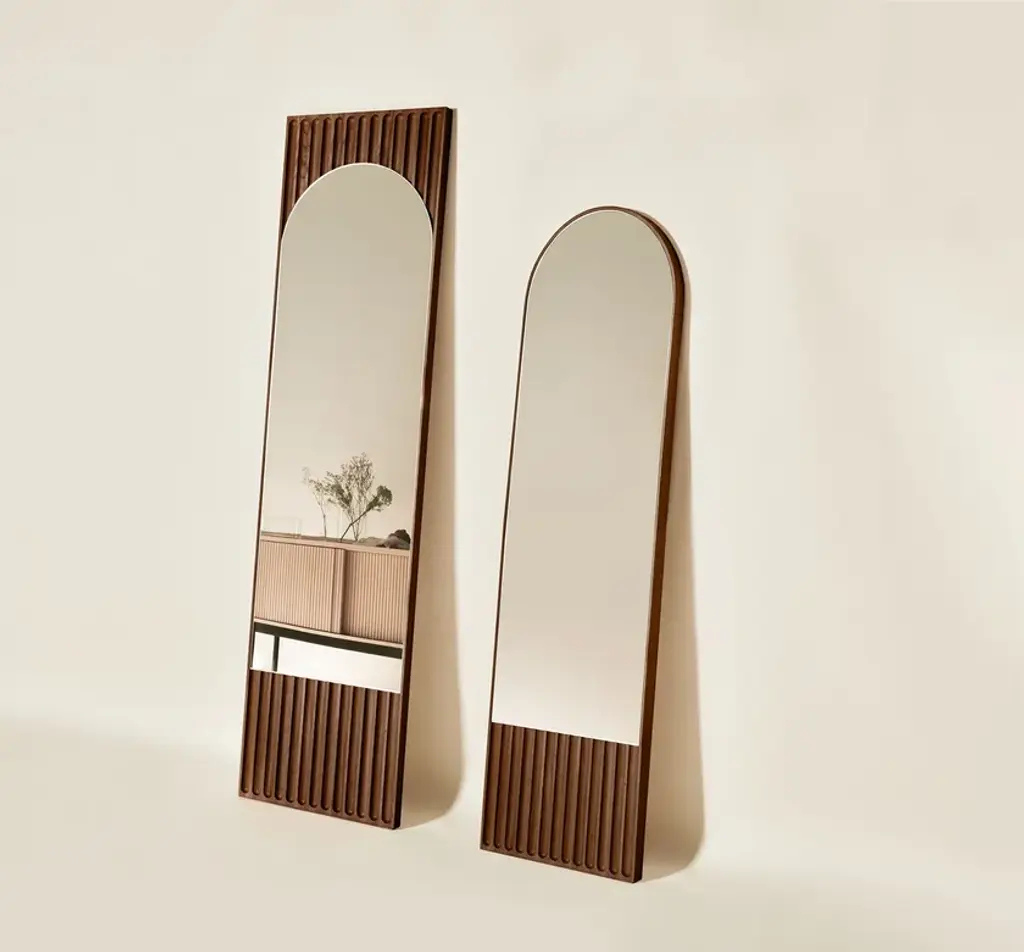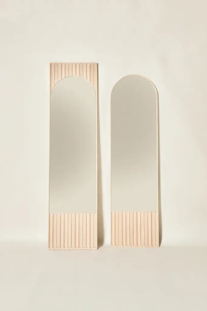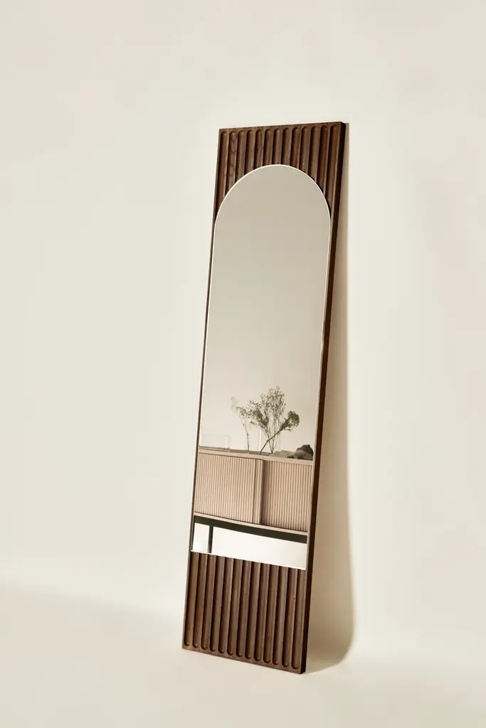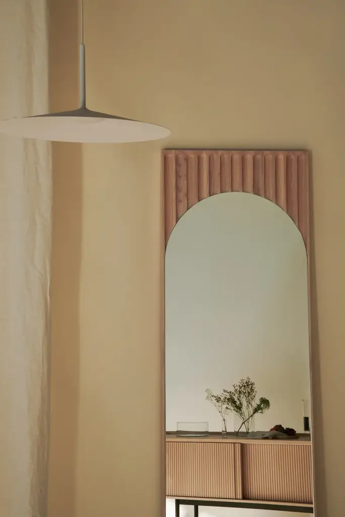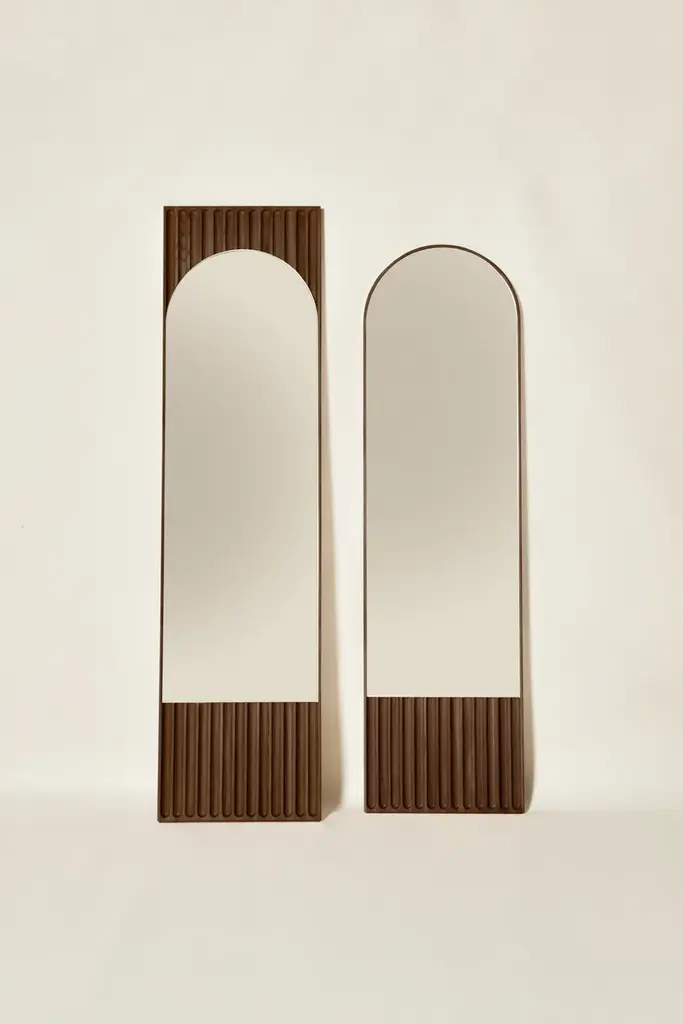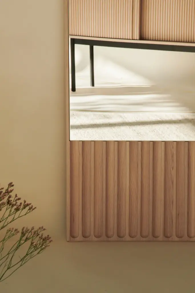 In Tutto Sesto, contrast is balance. A pair of mirrors where the lightness of the frame is counterpointed by the materic heaviness of the patterned base.Tutto Sesto mirrors are part of the 2023 collection of contemporary solid wood furniture. Born from the dialogue between Dale Italia and Cono Studio, the range is defined by essential aesthetics, in tune with current trends without losing touch with the craftmenship values of our Made in Italy. The mirrors stand out for the contrast between the lightness of the frame and the heaviness of the base. The milled pattern creates a decorative motif through plays of light and shadow, which change according to the location. The surface also enhances the natural quality of white ash wood, as an invitation to experience it with all the senses. Material: White Ash solid wood Finishing: Natural, acrylic finish Brown, acrylic finish Black, acrylic finishFrame: Made through the traditional technique of solid white ash wood processing. Exposed millings. Maintenance: For cleaning, we recommend a soft cloth moistened with water. Avoid aggressive alcohol-based detergents.Dale is constantly looking for new perspective and inspirations. In collaboration with the designers from Cono Studio, we have produced a collection of contemporary furniture in solid white ash wood. A new language for Dale Italia, with an essential and current aesthetic, capable to create warm, intimate and welcoming ambientes that feel like home. Discover the new range of white ash solid wood furniture with a contemporary design. Essential lines, contrasts and rhythms create stylish and exclusive elements. Monolithic and geometrical shapes create balances between solids and voids. In an warm, oneiric vision of space, rhythms of surfaces and shadows enhance each detail. A set complete of chair, table, coffee table, sideboard, and mirror, where space and matter become balance and shadow enhances each detail. Introducing Ash Wood For the first time, Dale Italia introduce a new variety of solid wood. White ash, available in the finishes: black, brown, and natural. Essential yet impactful. Contemporary yet warm. A semi-hard, light and durable wood, which adds brightness to the interior with an ultra-modern touch.Embracing a new language Dale Italia’s new collection embraces a contemporary language that expresses our values of quality craftsmanship and Made in Italy excellence. The solid ash wood furniture stands out for its monolithic, essential and geometric shapes. Whilst the rhythm of the surfaces creates a seductive play of shadows. Ours is an oneiric vision of space, to create an intimate, natural and warm ambient that feels like home.Dialoguing with Cono Studio The collection comes from the synergic dialogue between Dale Italia and the designer studio Cono Studio. Another first for us, purposed to involve our clients in an exclusive experience of contemporary furniture. As a result, each element expresses its own unique identity, but always in armory with the full collection.