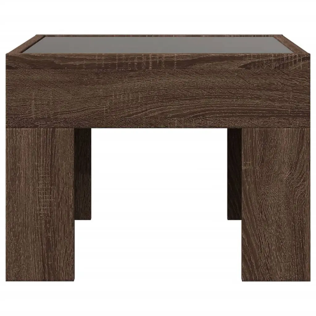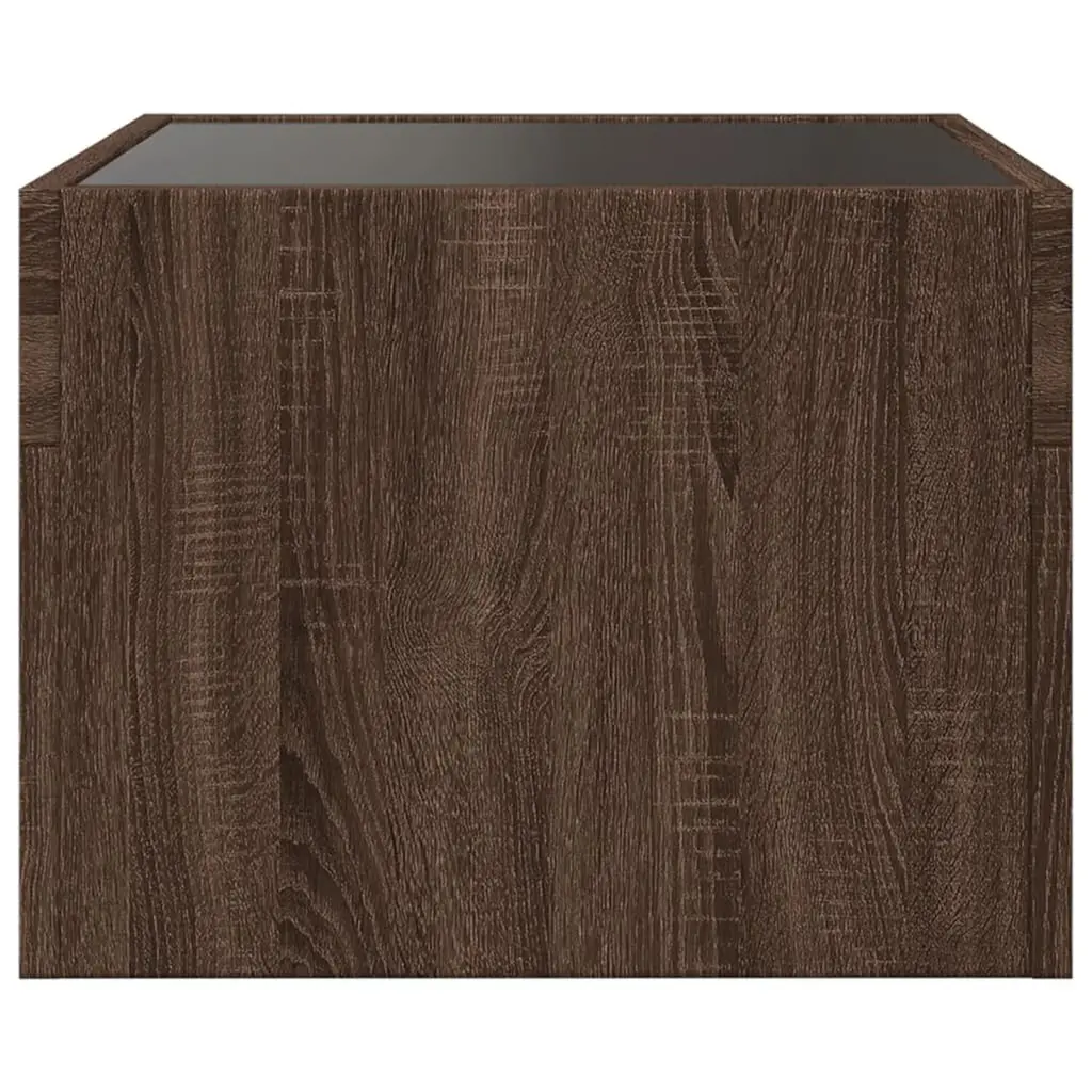This bedside table is a no-brainer for any modern bedroom. It’s built for both practicality and style with its compact square shape of 15.7 in. It fits just swell next to any bed and works as a fab nightstand for your essentials, while flaunting a great-looking brown oak finish that goes with loads of decor styles. Integrated LED Lighting: Comes with RGB LED lights that light up the mirror beautifully, creating a cozy vibe that's perfect for relaxing or late-night reads.Compact Size: At 15.7 x 15.7 x 11.8 in, it's made for narrow spaces, giving you plenty of surface area without overcrowding your room.Durable Construction: Made from engineered wood, this table is built tough, ensuring it lasts while keeping its stunning finish.Stylish and Versatile: Its minimalist modern look makes it fit for more than just the bedroom; it can also shine as a decorative end table in living or guest spaces.Easy Maintenance: The matte finish makes cleaning a breeze—just wipe it down with a damp cloth to keep it looking sharp.