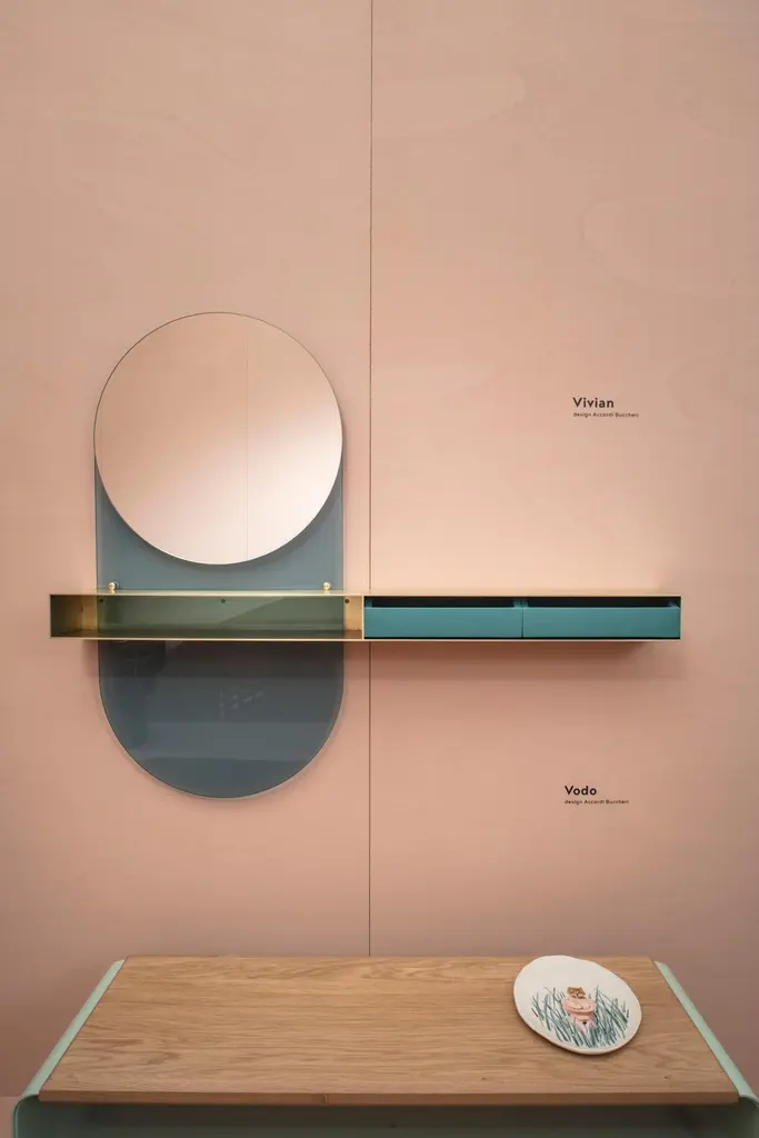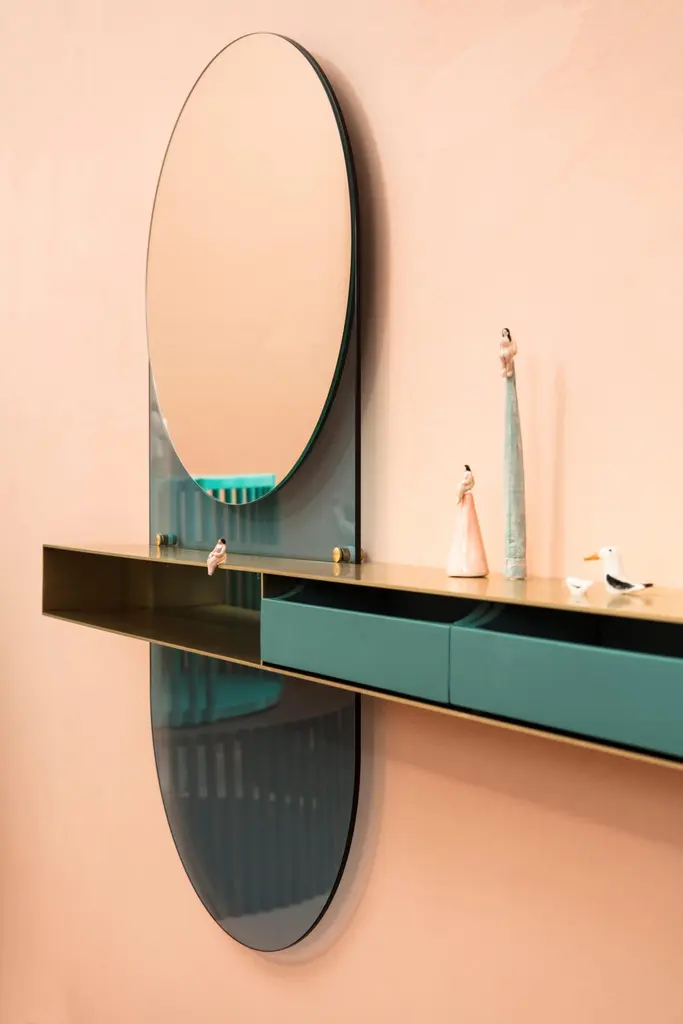 Vivian is a contemporary Beauty Desk, it can be a Makeup Table, a Writing Table, and even a mirror. Vivian mirror is a mirror with a jewelry shelf. An elegant and precious complement that can highlight an entrance hall, a bedroom or a bathroom. Vivian mirror is ideal for home environments or elegant hotel rooms, for mirroring, makeup or to guard your perfume. Vivian is a beauty desk or an elegant mirror with simple lines and sophisticated details. Vivian is ideal for intimate environments such as a boutique-hotel or a private residence. It is made of scratch-resistant lacquered wood, oak or canaletto walnut, brass, glass, mirror. There are many lacquered colors that you can choose. Designed by Accardi Buccheri for Medulum