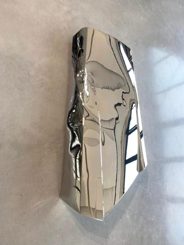 What A Time To Be Alive Mirror Object by Mark SturkenboomDimensions: W 60 x D 20 x H 125 cmMaterials: Crashed Ferrari Door, SilveredAll unique pieces, made from Ferrari, Lamborghini, PorscheWe live in a world where there is an urge to possess. The world of the haves and the have-nots. We want to show off with luxurious, expensive and grand items. Mark Sturkenboom responds to our collective thirst with the series What A Time To Be Alive, mirror objects made from crashed supercar doors like Lamborghini, Ferrari and Porsche. Cars that symbolize the current worship of the ‘nouveau riche’ and play with our thirst to possess. Sturkenboom reinvents a new statues quo by disarticulating and materializing a fierce fraction of a second, transforming a high impact collision into a solid state. Their liquid-like reflective state is the result of hundreds of hours excessive polish work.Mark Sturkenboom (Driebergen, 1983) is an artist that graduated with honors in 2012 at Artez Academy for the Arts in Arnhem/Netherlands. Since 2012 he works as a conceptual product designer/artist in his atelier in Utrecht.His work balances between art and design, he stretches the boundaries between art and design. He offers new viewpoints and rituals to deal with life.‘My focus lies not on the appearance of things, but on what I call the deeper layers in the relation between an object and its owner. ‘I try to call forward a myriad of associations and stimulate our thinking about what counts to us in our lives.I examine the meaning of objects and products and set them free from their conventional and initial use.’Sturkenboom reinterpretates products that are often intertwined with the themes love, time or has an inclination with a collective value perception.Engaging his work, you probably will need to start making ‘moral’ decisions. For instance his Ark, table clock, urn or vase are not just functional or only good looking.In their presence and while handling them they invite you to think about time, love passed or the possibility to free yourself from the burden of your possessions by destroying them.His work is exhibited and part of private collections worldwide, from New York to Shanghai, from Tokio to Amsterdam.