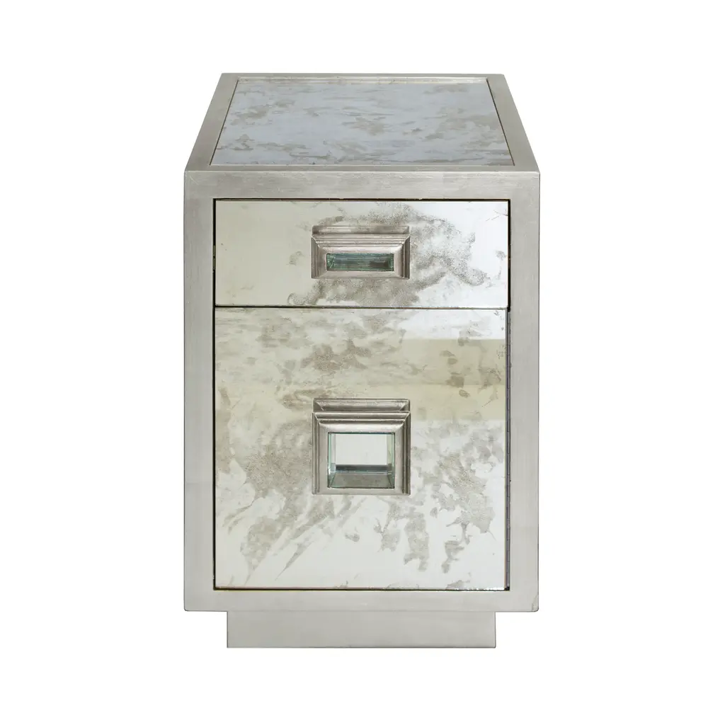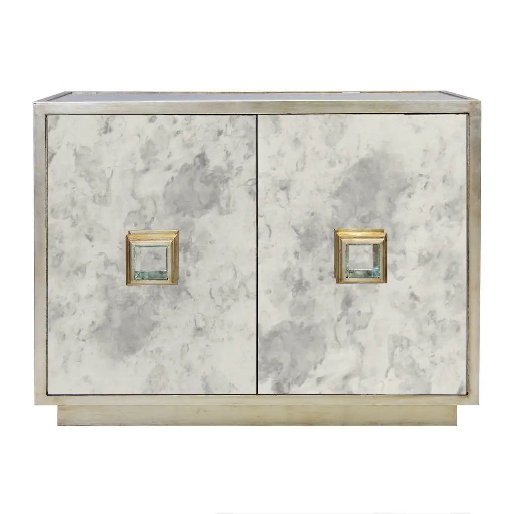 Add a touch of old world Hollywood glamour to your space with this classic storage table. Impeccable style combined with great utility – Cisco includes a generous drawer and cabinet storage with an adjustable shelf. Perfectly finished with shimmering gold or silver leaf and one-of-a-kind antique mirror detailing.