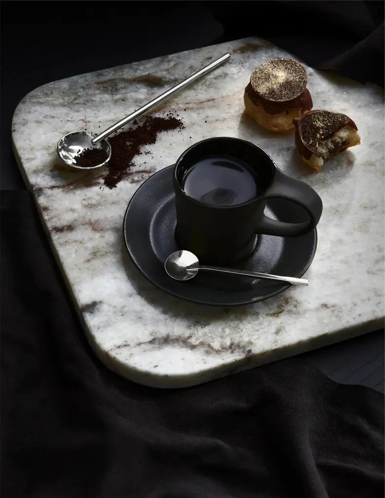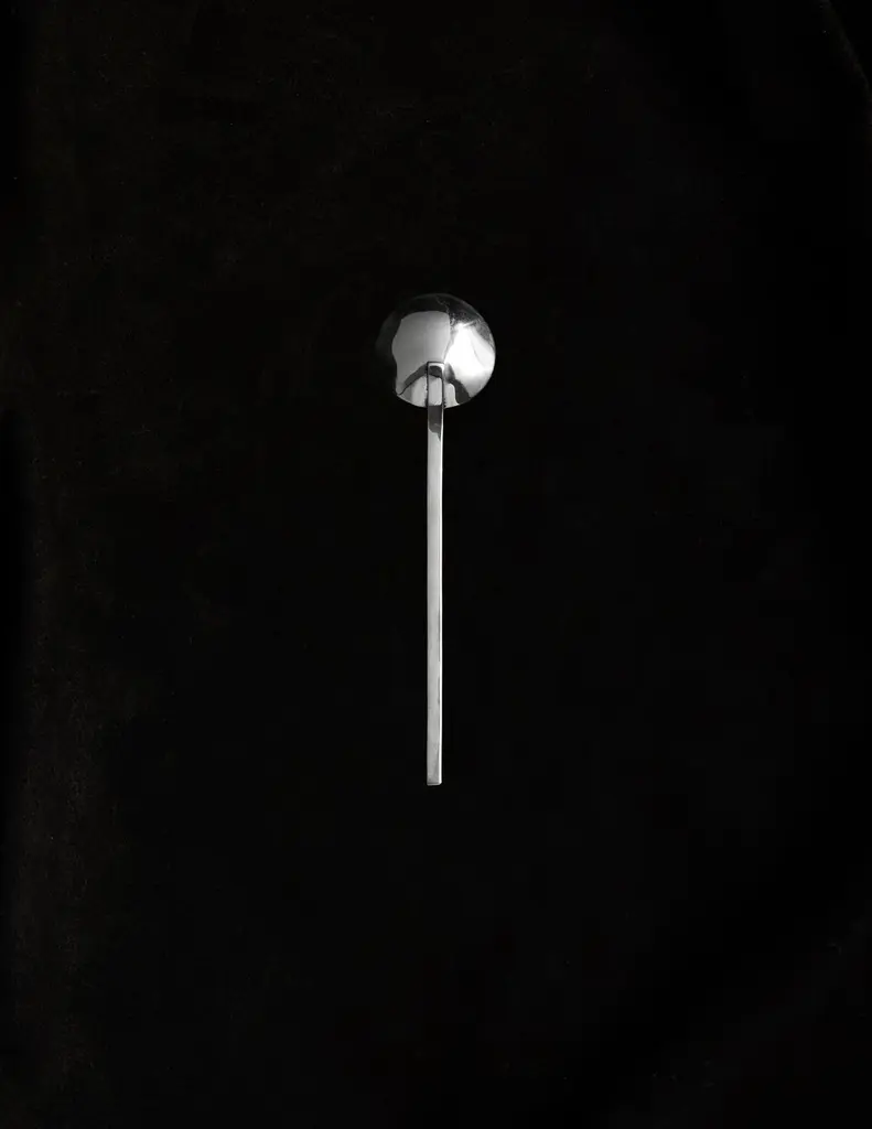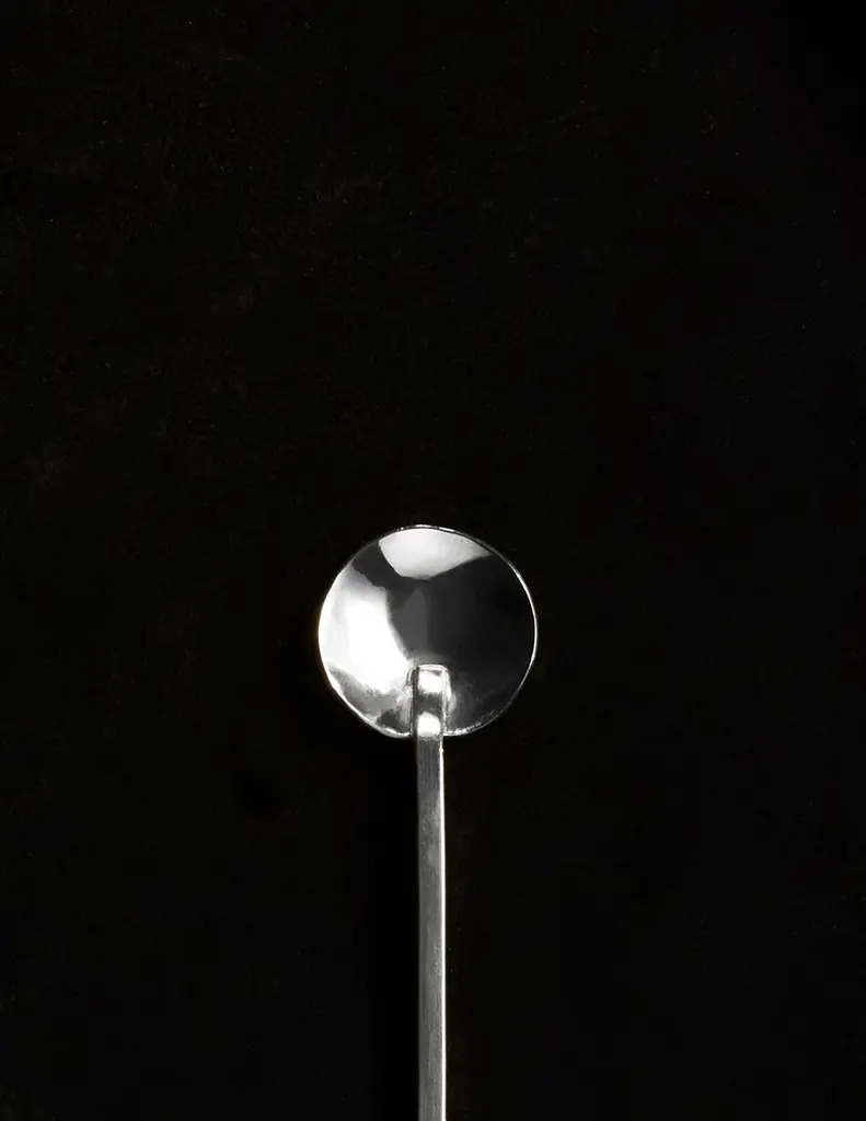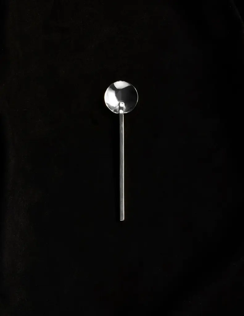An espresso spoon for the modern coffee connoisseur - crafted with passion and precision by Heath Wagoner of HW. Studio in Brooklyn.Made with high-polish sterling silver, this espresso spoon is not only beautiful to look at but also durable and long-lasting. Each spoon is expertly cast, forged, and hand-finished to ensure the highest quality and attention to detail.Whether you're savoring a rich, creamy morning cappuccino, or savoring a shot of espresso after dinner, this spoon is the perfect accompaniment to your favorite coffee beverage. Its compact size and ergonomic design make it easy to handle, while the sleek and stylish finish will add a touch of elegance to any coffee set.Whether you're a coffee aficionado or simply appreciate the finer things in life, this sterling silver espresso spoon is a must-have for your collection. Experience the craftsmanship and beauty of HW. Studio for yourself and elevate your coffee game to the next level.Also the perfect addition to any salt cellar or for serving Aleppo pepper flakes, this demitasse spoon isn't just for coffee lovers.HW. Studio's work is meant to re-invigorate modern dining while employing jewelry techniques and craft to create objects that are jewelry for dining and for the table.