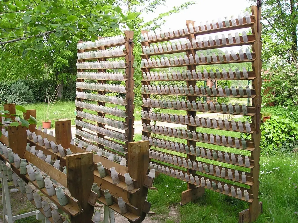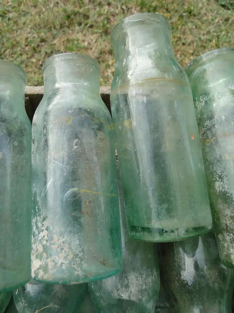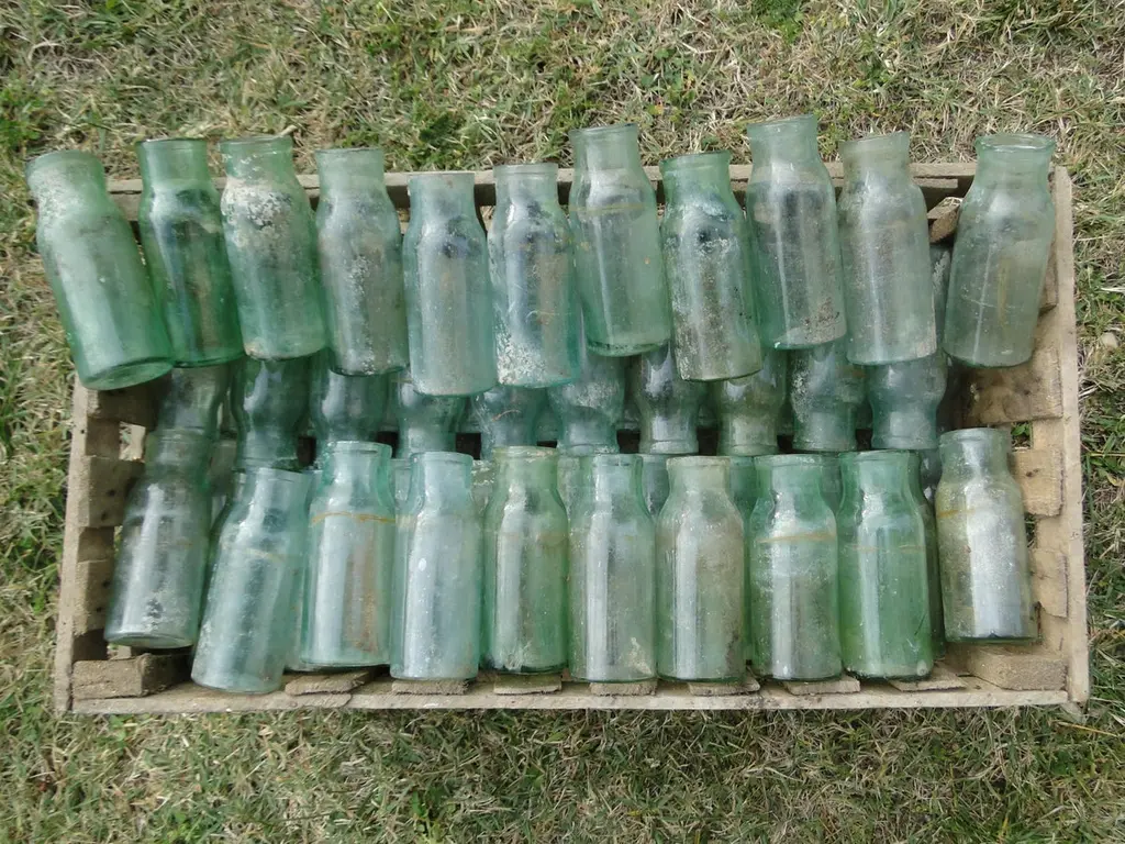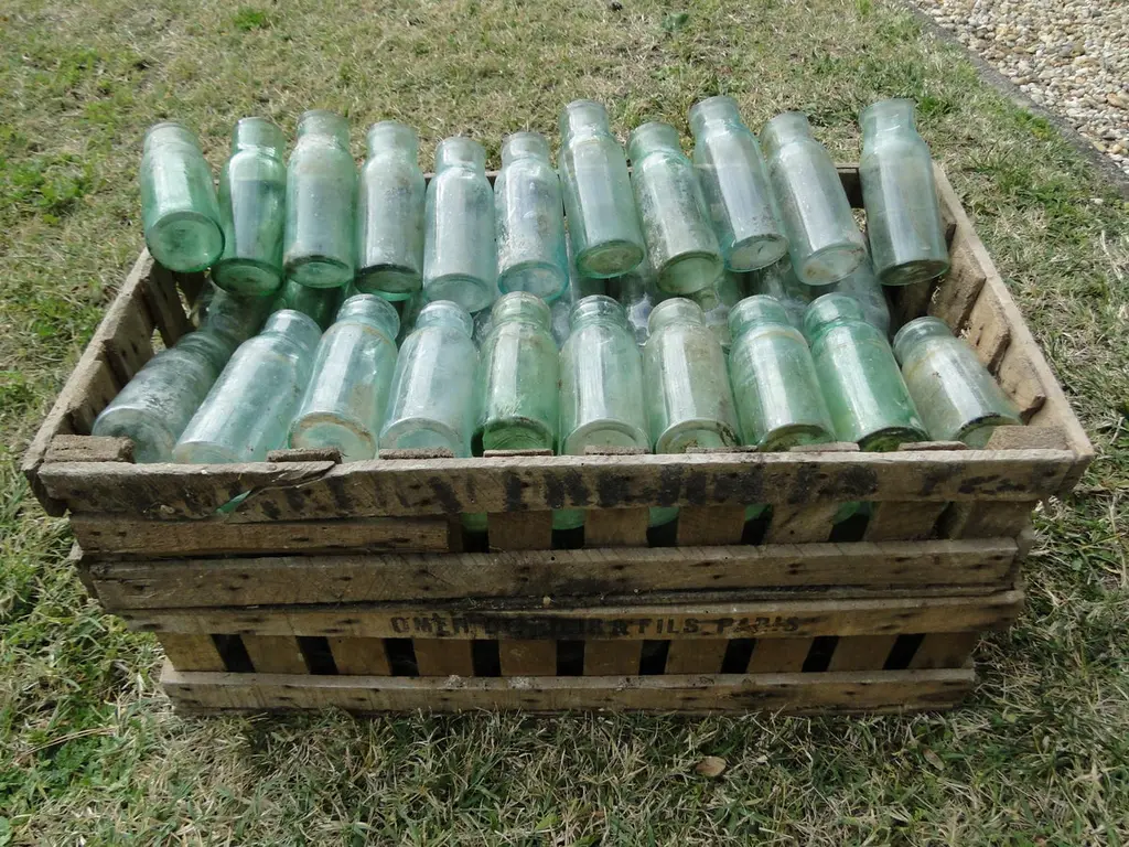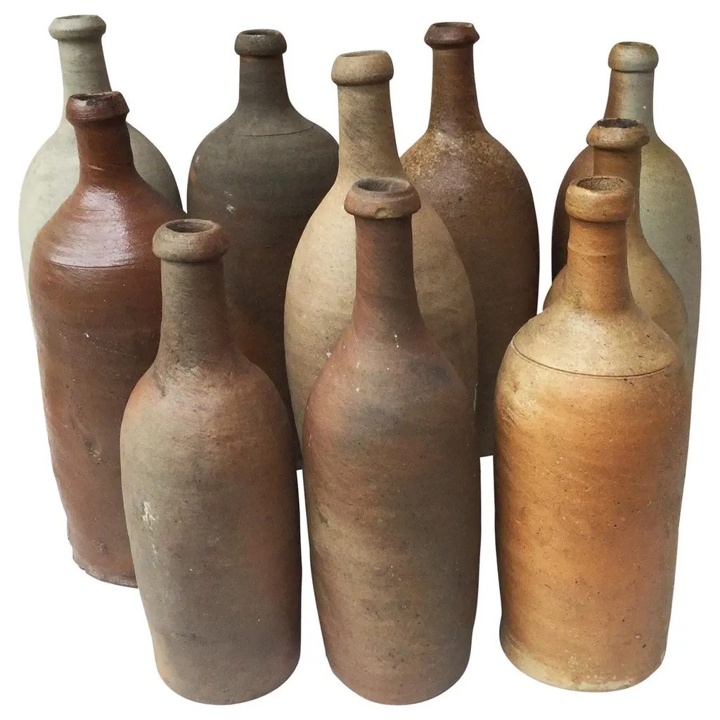Lot of 10 blown glass bottles from a 19th century grape chamber Thomery MoissacLot of 10 blown glass bottles from the 19th century from Moissac Tarn et Garonne.Height 5.11 in ø 1.57 in and 1.96 inThese adorable bottles were used to keep the chasselas:The inventor: Baptiste-rose Charmeux.1848: Baptiste Larpenteur forgets for several months clusters of Chasselas, the branches of which he has soaked in a cup filled with water.He finds them, in February, as fresh as when they were picked.1849: Baptiste-Rose Charmeux and Georges Valleaux. implement this discovery and have the first zinc devices manufactured for the conservation of fresh stalk grapes. 1850: To obviate the fragility of these devices, Rose Charmeux had terracotta devices manufactured on the same principle. But these are heavy and fragile.1852: Rose Charmeux has bottles made of varnished stoneware which he places on wooden supports.1865: Rose Charmeux replaces sandstone bottles with glass bottles.1867: Wine growers adopt the new process and gradually replace their zinc tubes with glass bottles.1877: Believing that the process is perfected, Rose Charmeux has it patented. Pons (michel), Thomery wine heritage, Thomery, 20.