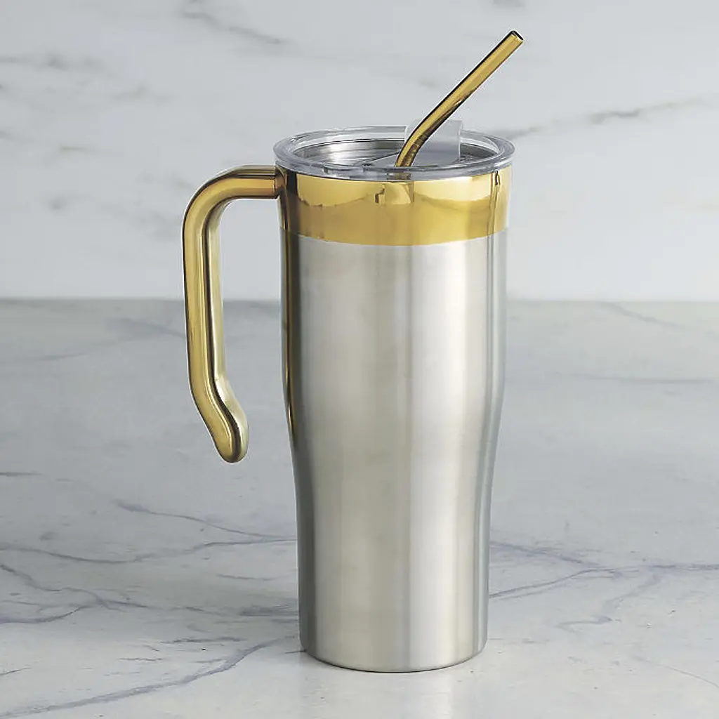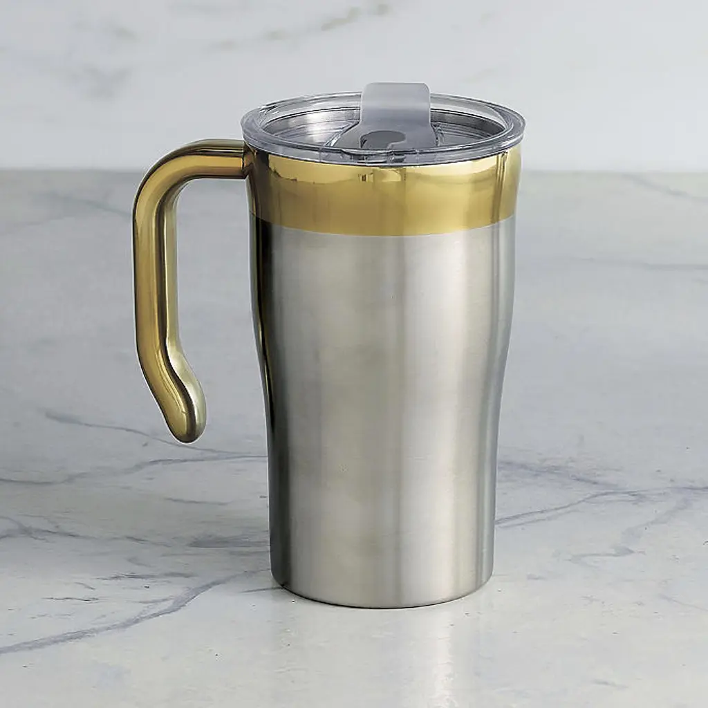 Keep your drinks at optimum temperature while on the go with the 4 Piece Stainless Steel 10 Ounce Thermal Travel Tumbler Set in Assorted Colors. These handy and lightweight thermal mugs are crafted from stainless steel and build with double wall insulation to maintain temperature control. Every thermal cup also comes equipped with a safety latch lid to prevent spillage while traveling. Each set comes with one bronze tumbler, one silver tumbler, one red tumbler, and one blue tumbler. Set: 4 Piece Travel Tumbler Cup Set Material: Stainless Steel Insulation: Double Wall Color: Assorted Blue, Red, Silver, Bronze Flip Top Safety Lid Hand Wash Only Set Includes: Four 10oz. Thermal Travel Tumblers Per Item Measurement: Thermal Travel Tumbler: 2.5" diameter, 8" height, 10oz. capacity, 0.55lbs weight