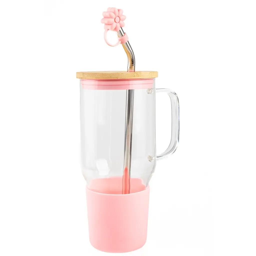 Stay refreshed and stylish with the Adria Hydration Bottle, designed for convenience and everyday hydration. Whether you're a busy parent, fitness enthusiast, or always on the go, this large-capacity bottle ensures you stay hydrated throughout the day.With a 33 fl oz capacity, it’s perfect for carrying water, coffee, or your favorite beverage. Crafted from durable borosilicate glass, it resists temperature changes, ensuring longevity and reliability. The sleek, tapered bottom fits effortlessly into most cup holders, making it ideal for travel or commuting.Available in a variety of vibrant spring colors and patterns, this bottle adds a fresh, stylish touch to your routine. It also comes with a bamboo lid and a stainless steel straw with a silicone stopper, providing a sustainable and eco-friendly drinking experience.Upgrade your hydration game with the Adria Hydration Bottle—where functionality meets fashion.