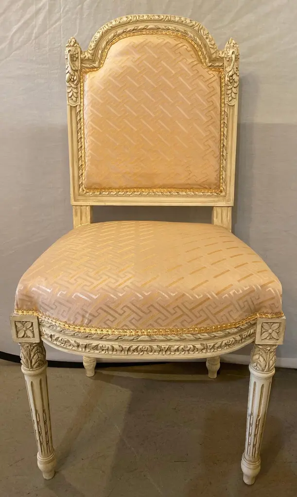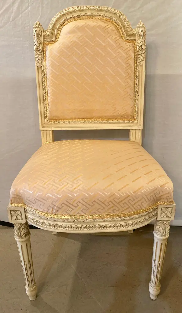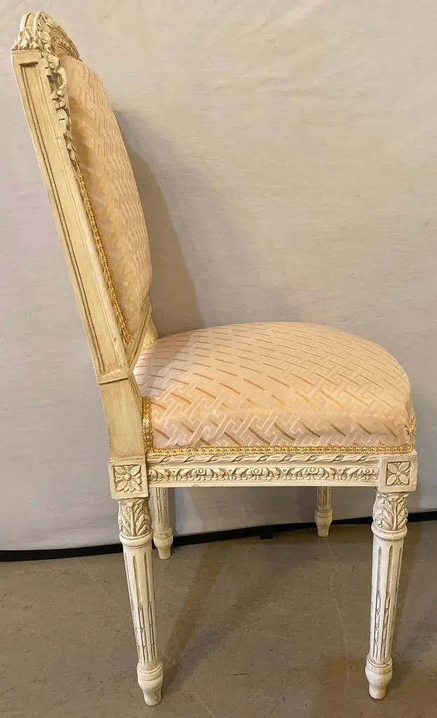 10 Swedish Louis Xvi Style Dining / Side Chairs Painted Carved Frames New Fabric