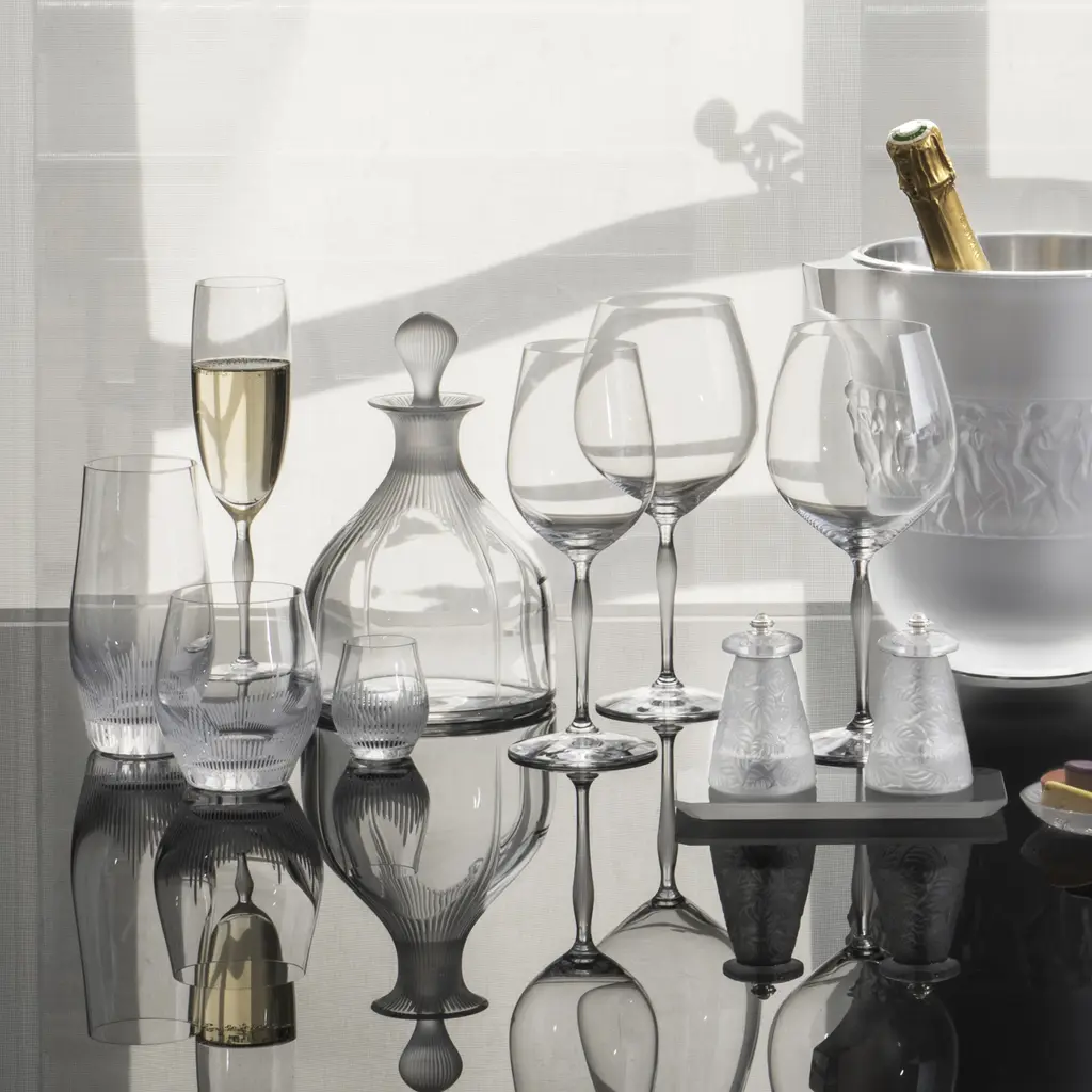 Lalique's renowned 100 Points collection has expanded from a single universal tasting glass to an entire assortment perfect for a wide variety of beverages and occasions. Designed in collaboration with international wine critic James Suckling, each glass in the collection is carefully finished, sanded and polished for incredible clarity and beauty.