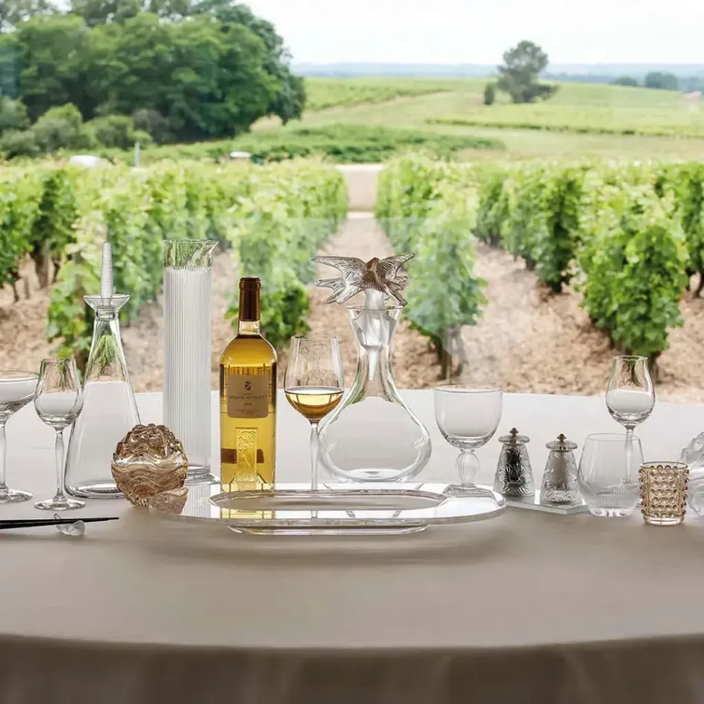 “Beautiful yet functional” is how internationally acclaimed wine critic James Suckling describes the 100 POINTS collection. With a name referring to the wine scoring system, 100 POINTS is a hand-made collection that embraces a modern design and precise utility while exemplifying the established style of Lalique: crystal fashioned by the best glass-masters, “U” shaped bowl and distinctive frosted rib stem to obtain the characteristic contrast of clear and satin-finish. The 100 POINTS universal glass enhances all types of wines. Trained as a jeweler at the Ecole des Arts Decoratifs in Paris in the late 1880's, Rene Lalique gained recognition as an independent designer for some of the era's great jewelry houses including Cartier and Boucheron. Eventually, he turned to glassmaking, and his techniques were a triumph for the Art Deco movement. Every piece of Lalique is finely detailed and produced by hand in Alsace, France.