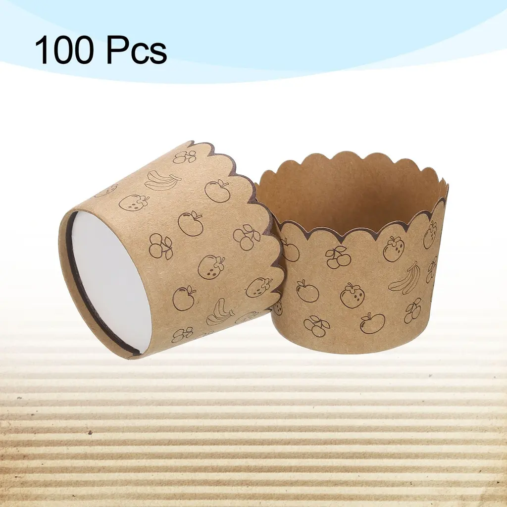 100pcs Paper Baking Cups Brown Kraft Paper Muffins Liner Cupcake Fruit - Small