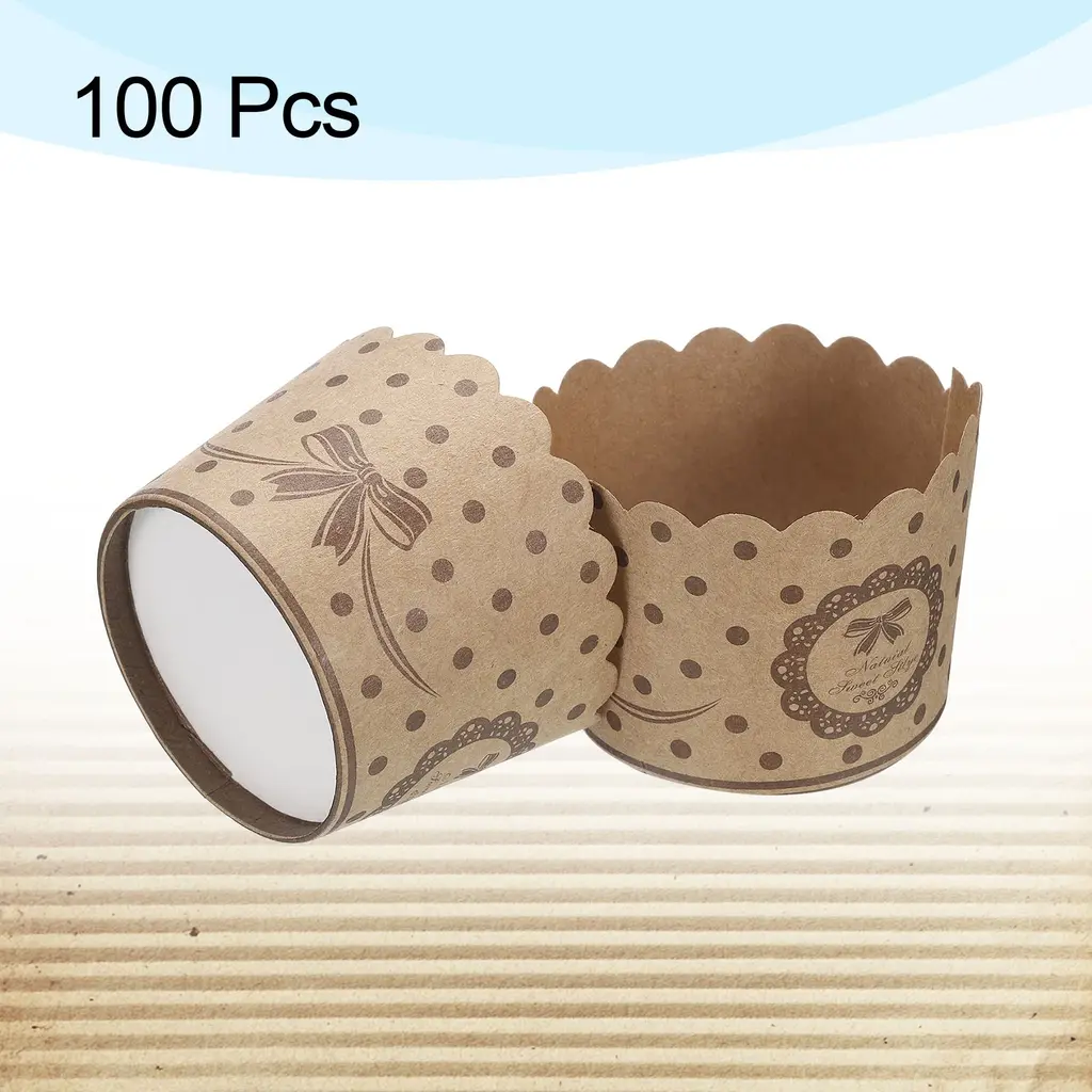100pcs Paper Baking Cups Brown Kraft Paper Muffins Liner Cupcake Polka Dot - Small