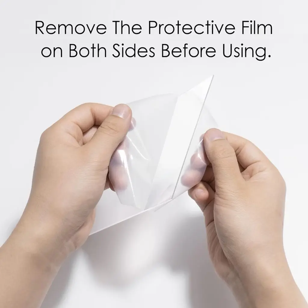 Whether you use it for photo glass replacements, wedding table signs or for crafts, MAKE SURE TO REMOVE the protective films from both sides, which prevent scratches & dust during shipping and provide a clean surface.