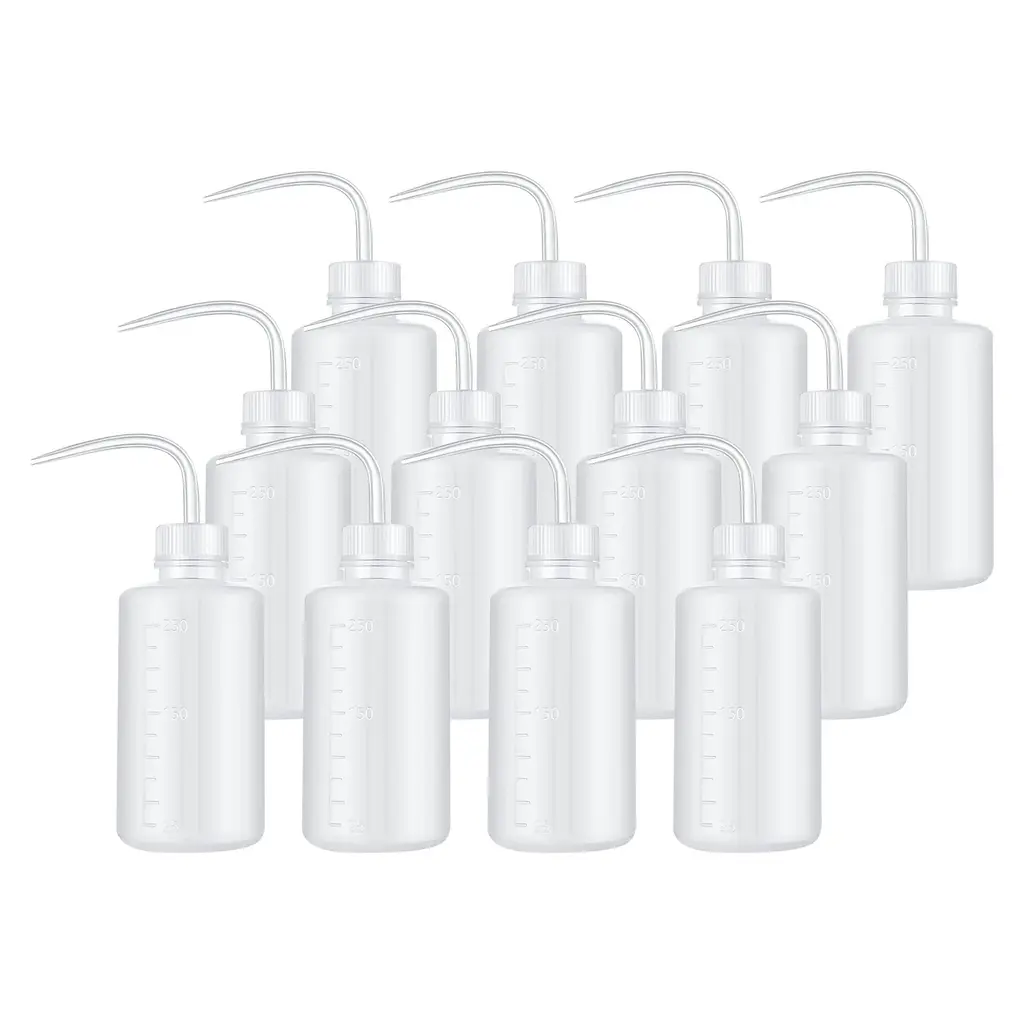 Make watering and feeding your house plants a breeze with these 12 Pcs 8oz Lab Squeeze Bottles. Made of high-quality plastic, these bottles are flexible, impact-resistant, and easy to clean. The scale marks on the surface allow for precise water measurement, while the bent nose design makes it easy to water plants without getting them wet. With a capacity of 8 ounces (250ml), these bottles are perfect for both indoor and office use. In addition to plant care, they can also be used for storing bleach, washing labware, and holding acetone. Practical and versatile, these squeeze bottles are a must-have for any plant lover or laboratory setting.Features:
