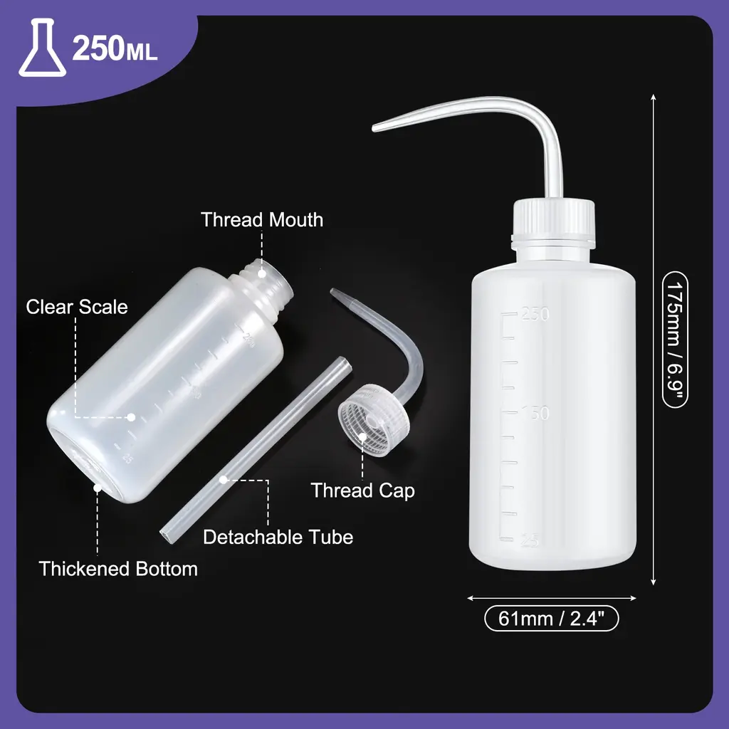Make watering and feeding your house plants a breeze with these 12 Pcs 8oz Lab Squeeze Bottles. Made of high-quality plastic, these bottles are flexible, impact-resistant, and easy to clean. The scale marks on the surface allow for precise water measurement, while the bent nose design makes it easy to water plants without getting them wet. With a capacity of 8 ounces (250ml), these bottles are perfect for both indoor and office use. In addition to plant care, they can also be used for storing bleach, washing labware, and holding acetone. Practical and versatile, these squeeze bottles are a must-have for any plant lover or laboratory setting.Features: