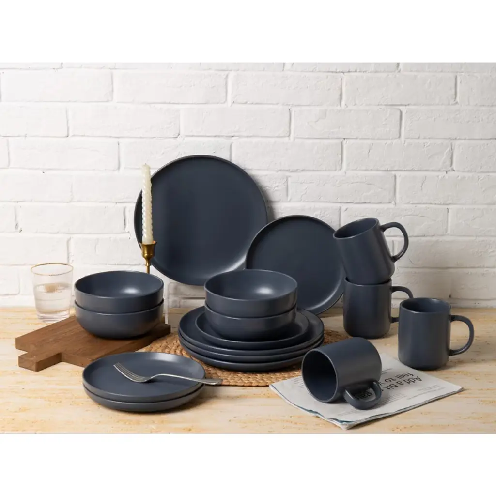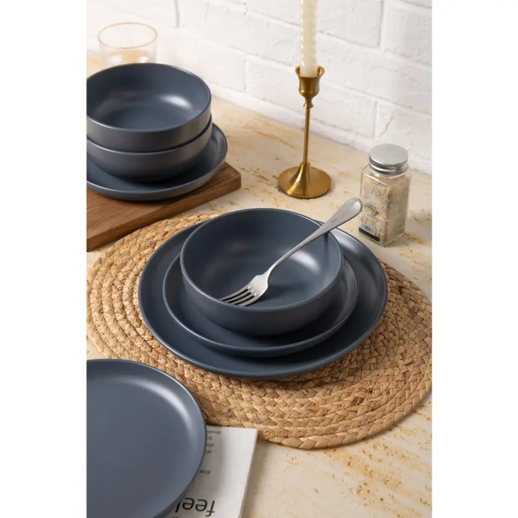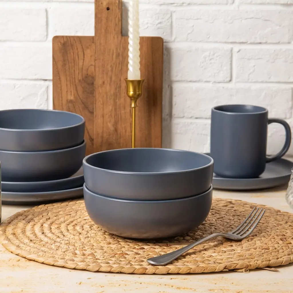 12-piece Stoneware Dinner Plates Bowls Sets,blue
