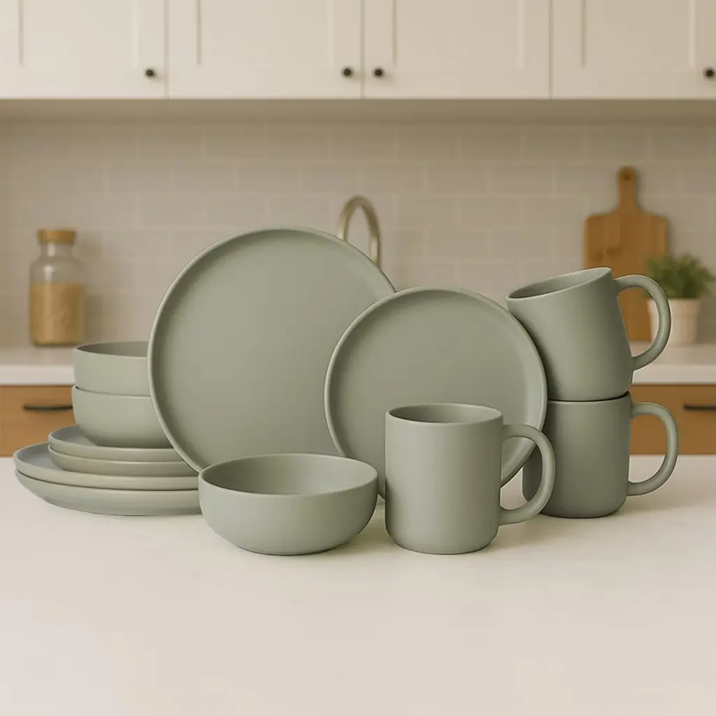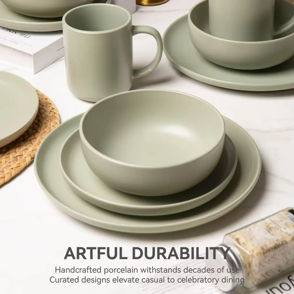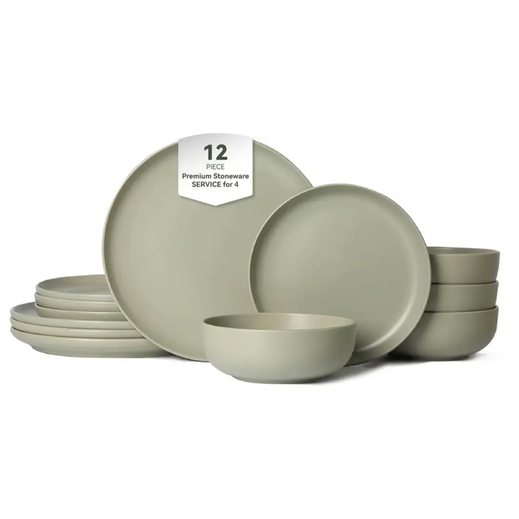 12-piece Stoneware Dinnerware Sets With Mugs | Microwave & Dishwasher Safe,green
