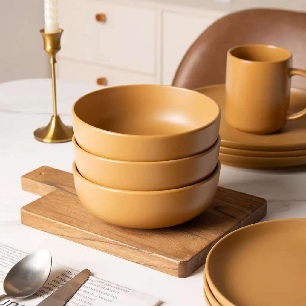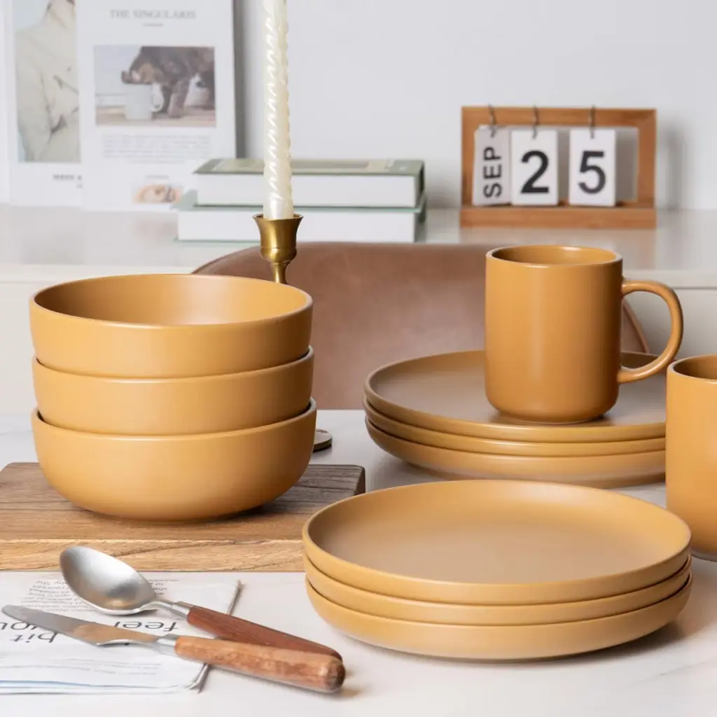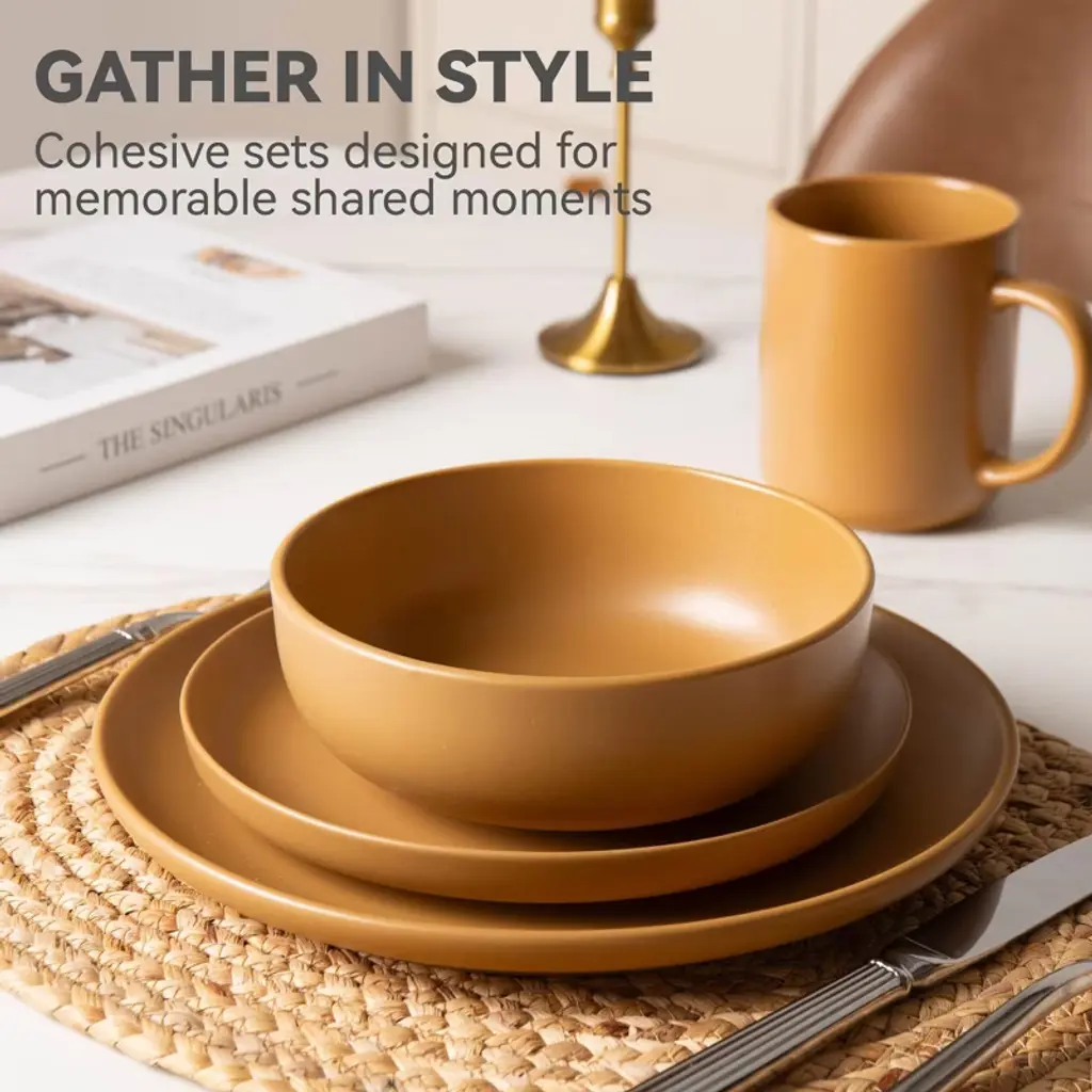 12-piece Stoneware Dinnerware Sets With Mugs | Microwave & Dishwasher Safe,orange