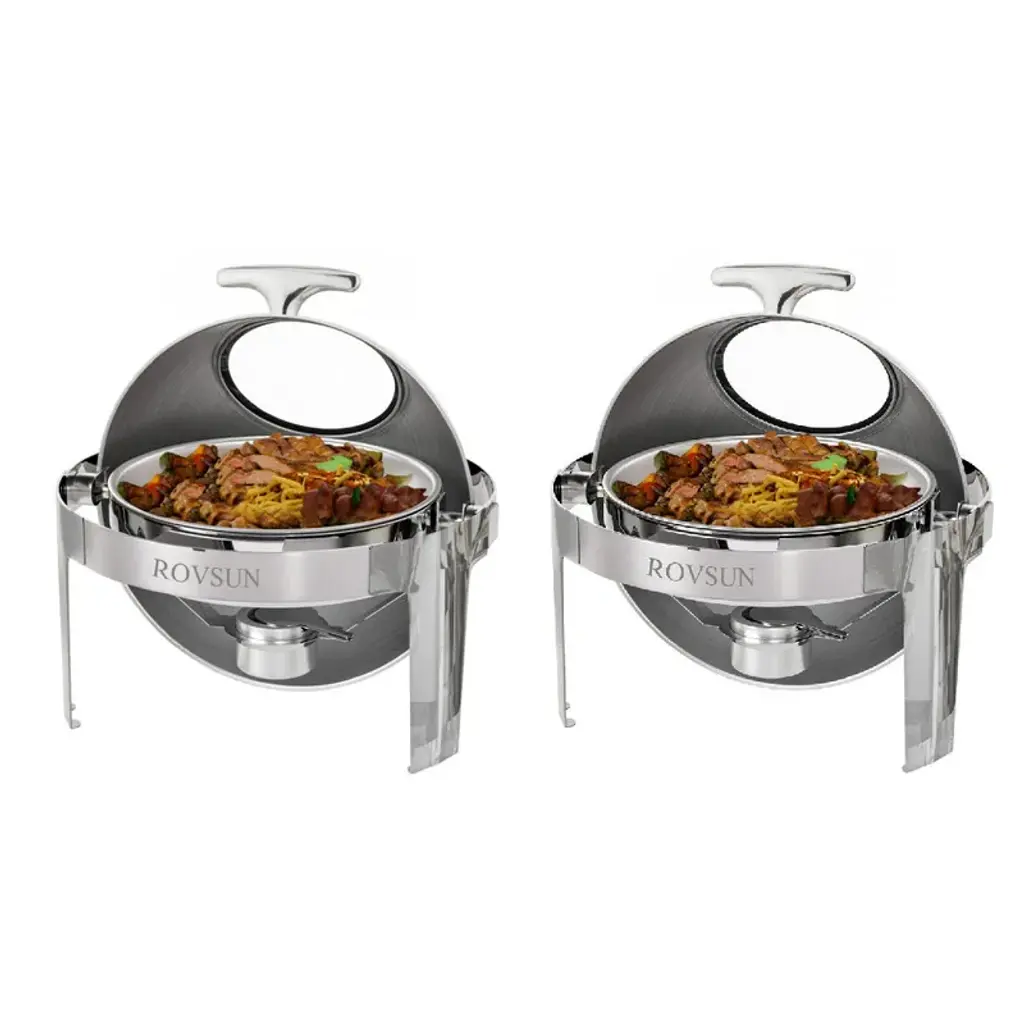 1/2 Set 6 Qt Round Stainless Steel Roll Top Chafing Dish - 1-Set