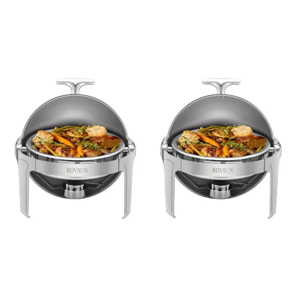 1/2 Set 6 Qt Stainless Steel Round Roll Top Chafing Dish - 2-Set