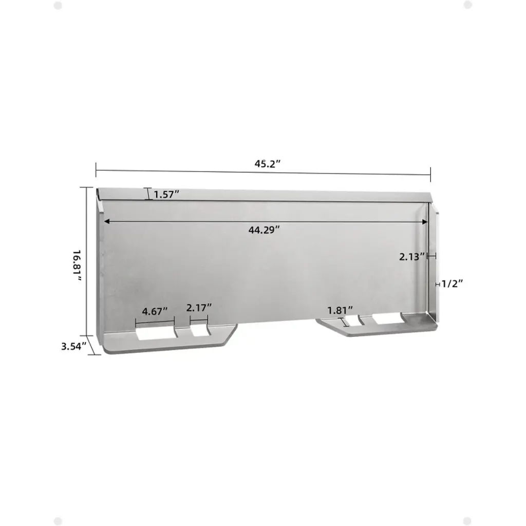 1/2" Skid Steer Attachment Plate: Universal Quick Attach Mount Plate for Loaders?? Key Features & Benefits ?? Easy Installation: Effortlessly weld or bolt this mount plate to plows, forks, and other tractor accessories. Designed for seamless integration with Kubota and other major loader brands. Heavy-Duty Construction: Built from 1/2" high-grade steel, this plate ensures superior strength and longevity, even under the most demanding conditions. Ultimate Versatility: Perfect for snow removal, landscaping, material handling, and more. Transform your equipment into a multi-functional powerhouse. Universal Compatibility: With precision-engineered dimensions, this plate fits a wide range of skid steers, tractors, and loaders. Reliable Support: Backed by a responsive customer service team ready to assist you within 24 hours. ?? Product Overview ??The GarveeLife 1/2" Skid Steer Attachment Plate is the ultimate solution for farmers, construction professionals, and DIY enthusiasts looking to maximize the functionality of their equipment. This robust mount plate allows you to quickly connect and switch between attachments, saving time and boosting productivity. Whether you need to clear snow, move debris, or handle heavy materials, this adapter plate ensures a secure and reliable connection every time.Crafted from premium steel, it offers exceptional durability and resistance to wear and tear. Its universal design makes it compatible with most loaders on the market, including popular brands like Kubota, John Deere, Bobcat, and more. The precise dimensions ensure a perfect fit, while the reinforced structure guarantees safety and stability during operation.? Detailed Features ?1. Easy Installation & Customization Weld or Bolt Flexibility: Designed for straightforward installation, this plate can be welded for a permanent fit or bolted for adjustable mounting. This makes it ideal for attaching to plows, forks, buckets, and other accessories. No Special Tools Required: With pre-drilled holes and a user-friendly design, you can install it without professional assistance. Adapts to Various Attachments: Whether you¡¯re adding a snowplow, grapple, or sweeper, this plate serves as a reliable base for virtually any implement. 2. Unmatched Durability 1/2" Steel Construction: The plate is built to withstand heavy loads and intense pressure, ensuring it won¡¯t bend or break under stress. Rust-Resistant Finish: Treated to resist corrosion, this plate maintains its integrity even in harsh weather conditions. Long-Lasting Performance: Engineered for endurance, it reduces the need for frequent replacements, saving you time and money. 3. Versatile Applications Snow Removal: Attach a plow or blower to clear driveways, roads, and parking lots efficiently. Landscaping & Debris Handling: Use with forks or grapples to move logs, rocks, and other materials. Construction and Farming: Ideal for transporting supplies, lifting pallets, and tackling various tasks around the job site or farm. 4. Universal Compatibility Precision Dimensions: With an outer width of 45.2", inner width of 44.29", and height of 16.81", this plate fits most skid steers and loaders. Works with Major Brands: Compatible with equipment from Kubota, John Deere, Bobcat, Caterpillar, and others. Seamless Integration: The quick-attach system allows for effortless attachment and detachment, minimizing downtime. 5. Trusted Support 24-Hour Customer Service: Have a question or need assistance? Our team is always ready to help via email. Satisfaction Guarantee: We stand behind the quality of our products and are committed to ensuring your complete satisfaction. ?? Technical Specifications ??Material£ºHigh-Grade SteelThickness£º1/2"Outer Width£º45.2 inchesInner Width£º44.29 inchesHeight£º16.81 inchesCompatibilityUniversal (Fits Kubota, John Deere, Bobcat, etc.)InstallationWelding or BoltingApplicationsSnow Removal, Landscaping, Material Handling, Farming, ConstructionFinishCorrosion-ResistantWarrantyResponsive Customer Support