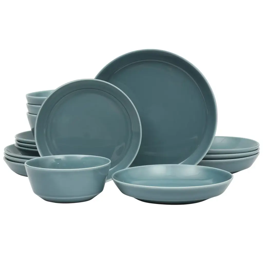 12pc Stoneware Westfield Dinnerware Set Blue - Threshold™: Solid Dish Set, Microwave & Dishwasher Safe, Service For 4