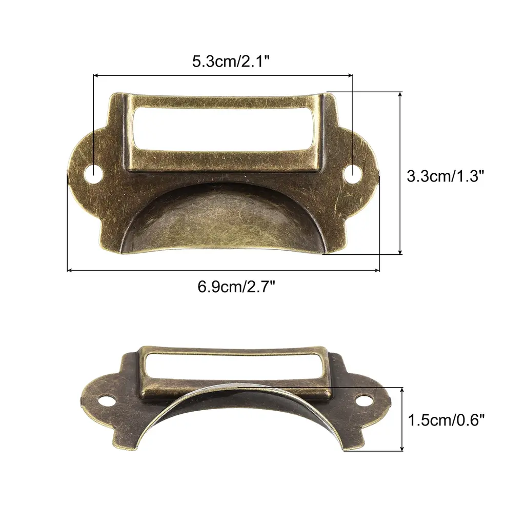 Description:[Material]- These cup drawer pulls are made of iron material with good malleability, ensuring durability and long-term use, and the beautiful finish adds a vintage feel to any kitchen cupboard or piece of furniture.[Design]- The vintage drawer handles are brushed for a vintage finish, giving your furniture a classic and elegant touch. Each handle comes with screws for easy installation.[Easy to Use]- Simply attach the drawer pulls to your drawer, dresser, cupboard, or any other furniture piece using the screws provided. The handles are suitable for both indoor and outdoor use.[Wide Application]- These vintage cup pulls are suitable for kitchen cupboards, closets, cabinets, dressers, and any other furniture that requires a handle and are great for decorating your kitchen, bedroom, living room, or any other space in your home.Specification:Material: IronColor: BronzeHandle Length:6.9cm/2.7"Handle Width:3.3cm/1.3"Handle Height: 1.5cm/0.6"Hole Distance: 5.3cm/2.1"Package Included: 1 set x cup pulls with screw