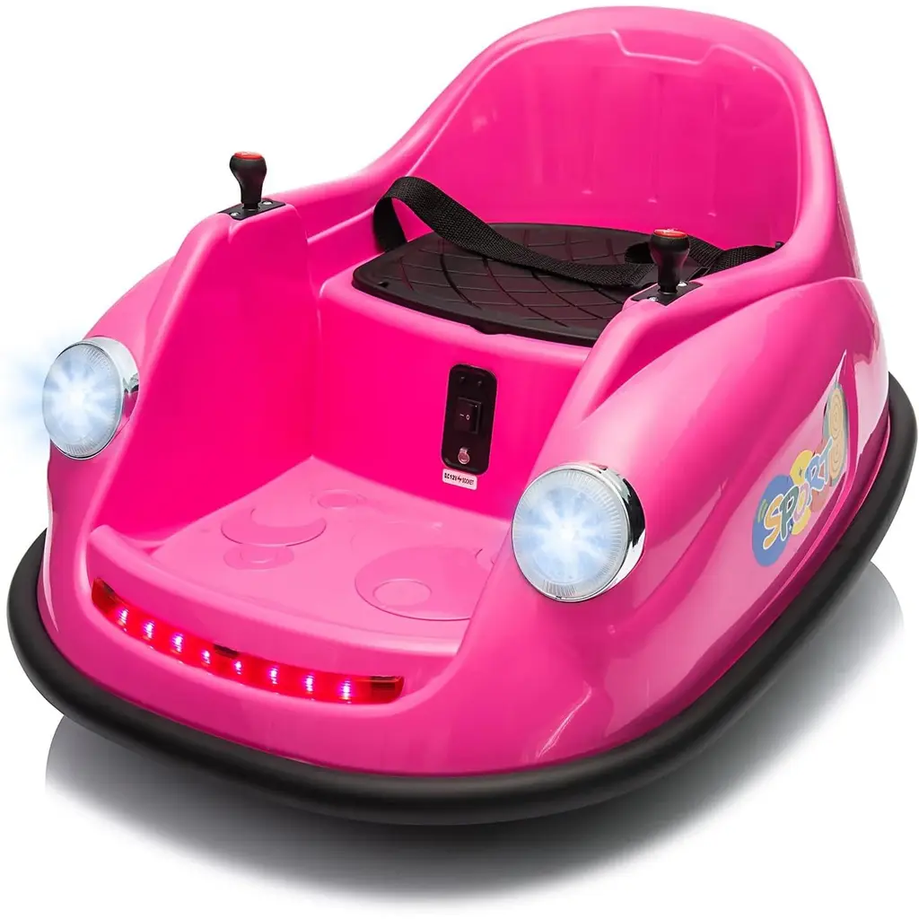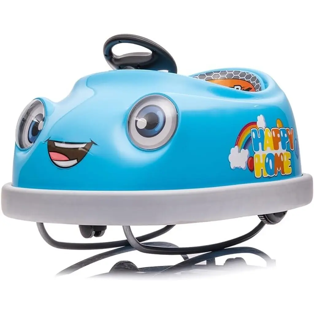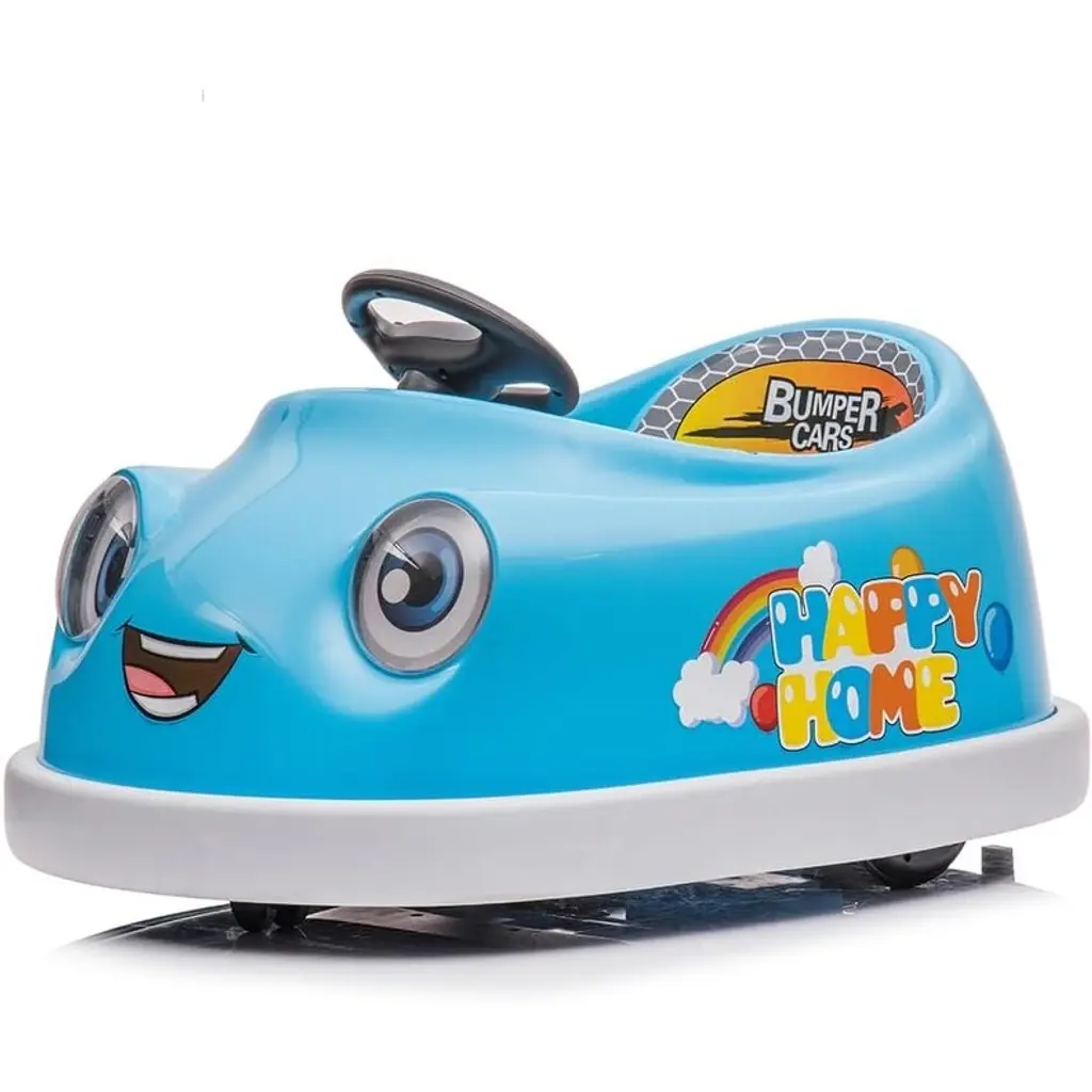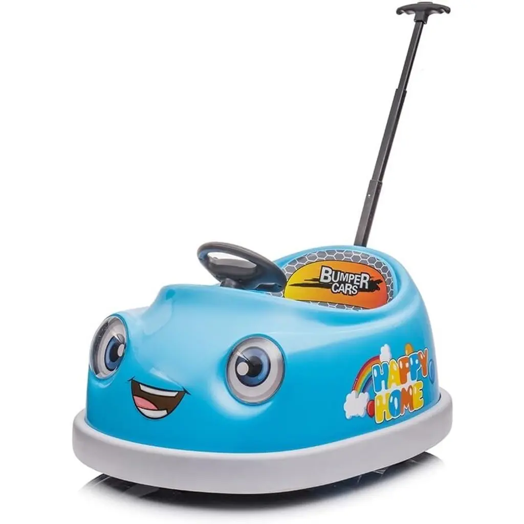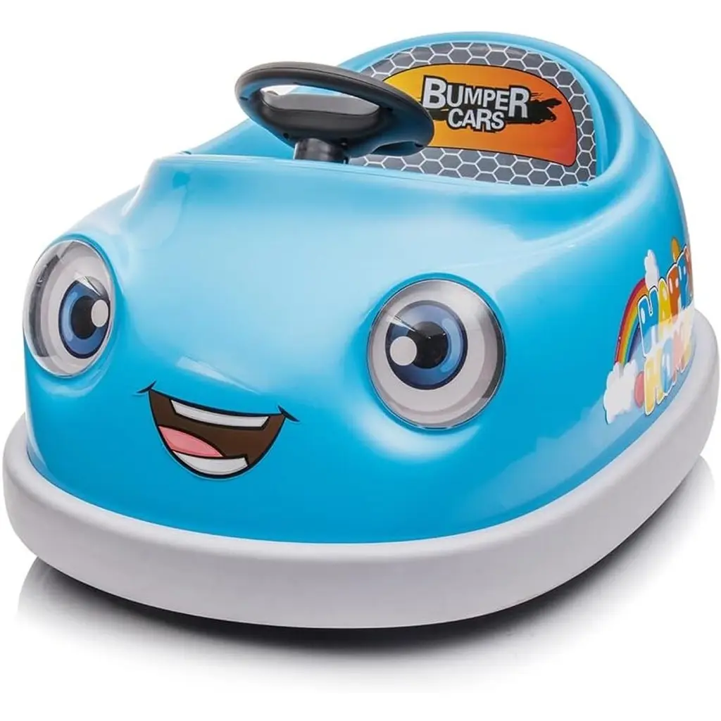 12v Bumper Car For Kids, 6-In-1 Electric Bumper Car With Pushrod Dinner Plate,usb Music,rocking Horse Mode,bumper Car Mode - Blue