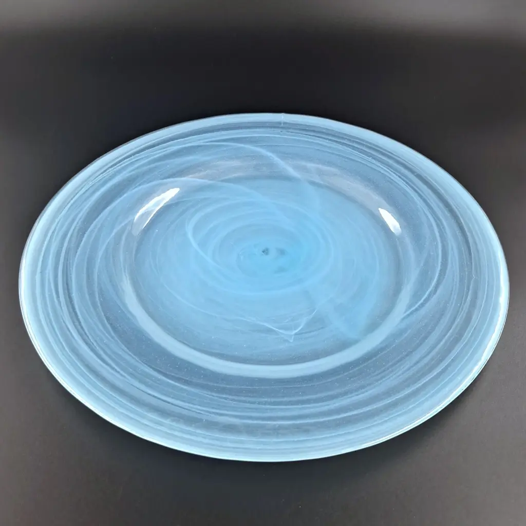 Specification: Description:Transform your dining presentation with this handmade glass charger plate, showcasing a mesmerizing marbleized alabaster swirl in a beautiful aqua tone. Measuring 13 inches in diameter, each piece is individually crafted with a unique stone-like effect that brings an artistic touch to your table setup. Ideal for dinner parties, weddings, showers, or buffet displays, this glass charger plate enhances your table's aesthetic with its eye-catching design. Available in sets of 1, 4, or 8, it allows for customizable settings, whether you're hosting a small gathering or a grand event. Add a refined layer to your table decor with this one-of-a-kind piece that combines both style and functionality, making each dining experience feel special.