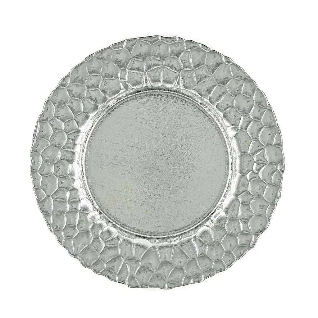 13" Charger Plate Abstract Pattern On The Rim For Dining - Set-Of-12 - Silver