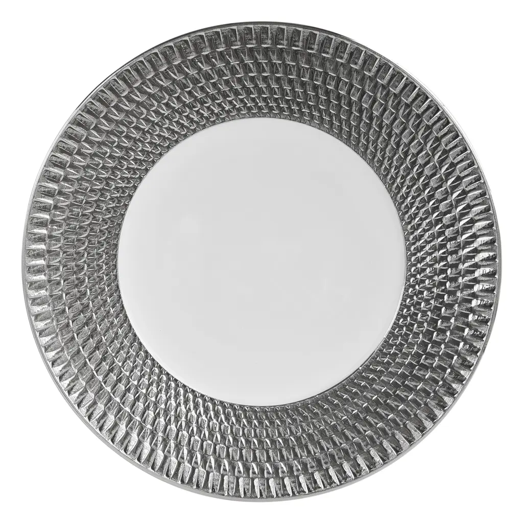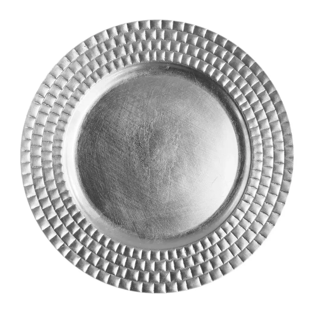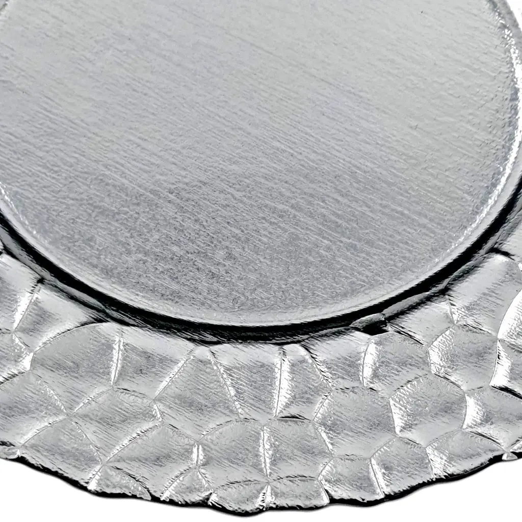 13" Charger Plate Abstract Pattern On The Rim For Dining - Set-Of-4 - Silver