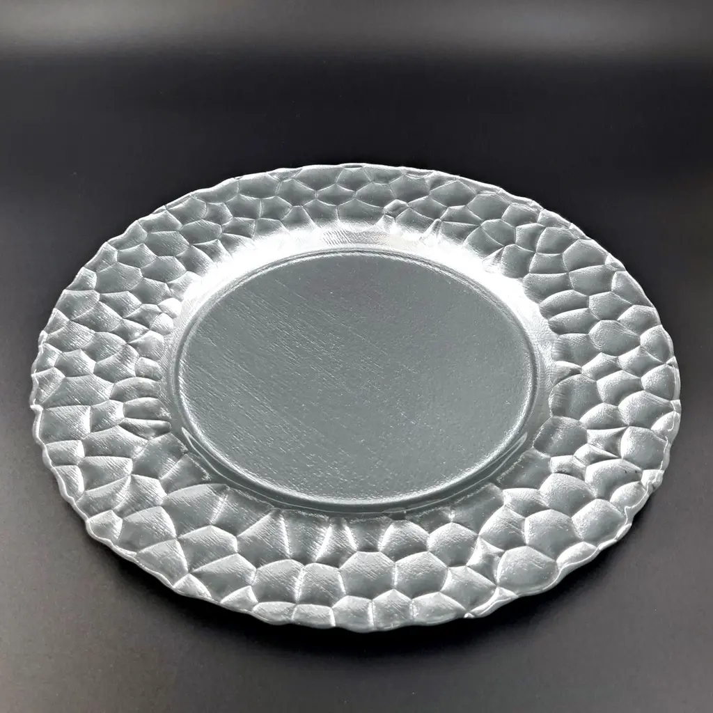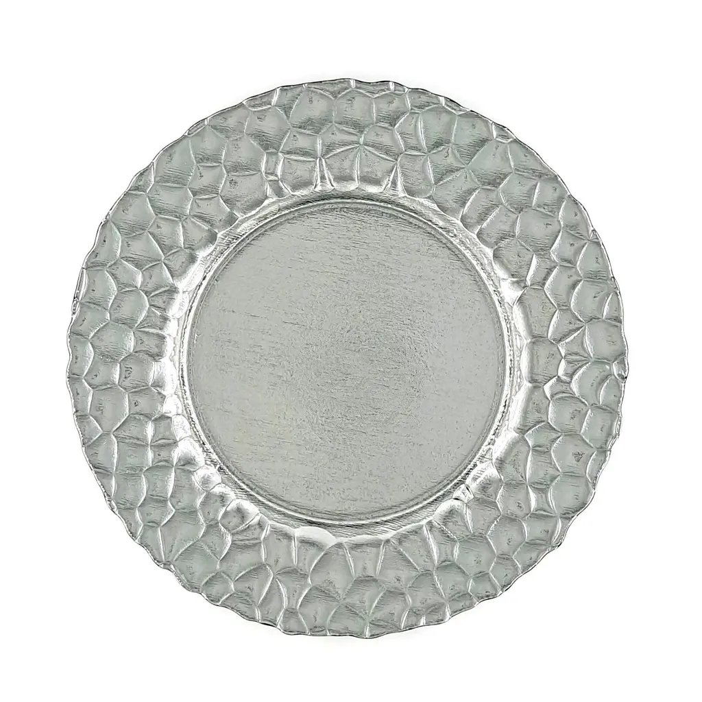 13" Charger Plate Abstract Pattern On The Rim For Dining - Set-Of-8 - Silver