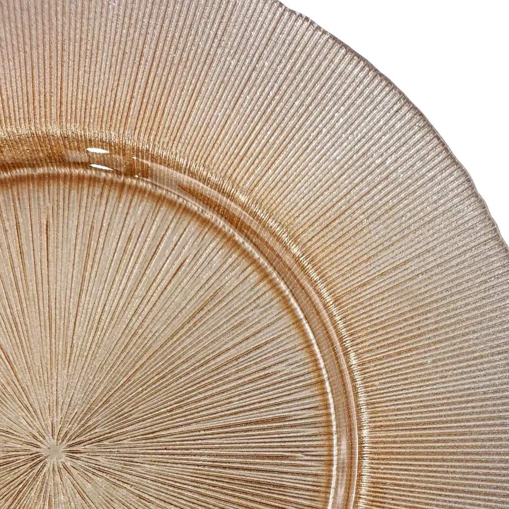 13" Glitter Glass Charger Plate With Stripe Texture And Shimmering Detail - Set-8 - Blush
