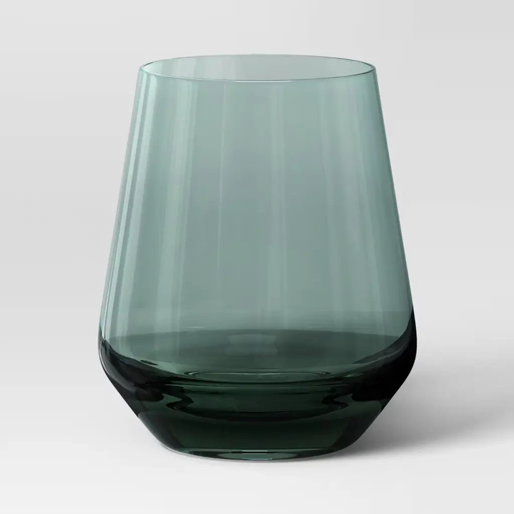 Make a stylish statement with your beverage service using this 14.8-Ounce Stemless Wine Glass from Threshold™. Made of glass with a hint of color, this stemless wine glass adds a touch of modern sophistication to your sipping ritual while looking elegant in your hand. Perfect for serving any cold beverage from water to wine to your favorite cocktails, this dishwasher-safe glass makes for a beautiful and functional addition to your table settings.Threshold™: Looks like home, feels like you.