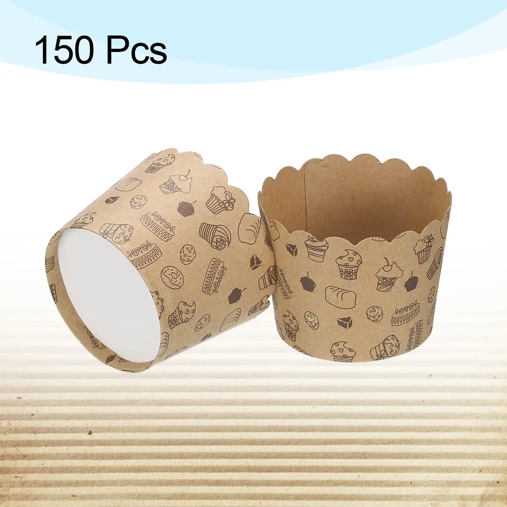 150pcs Paper Baking Cup Brown Kraft Paper Muffins Liner Cupcake Small Cake - Standard