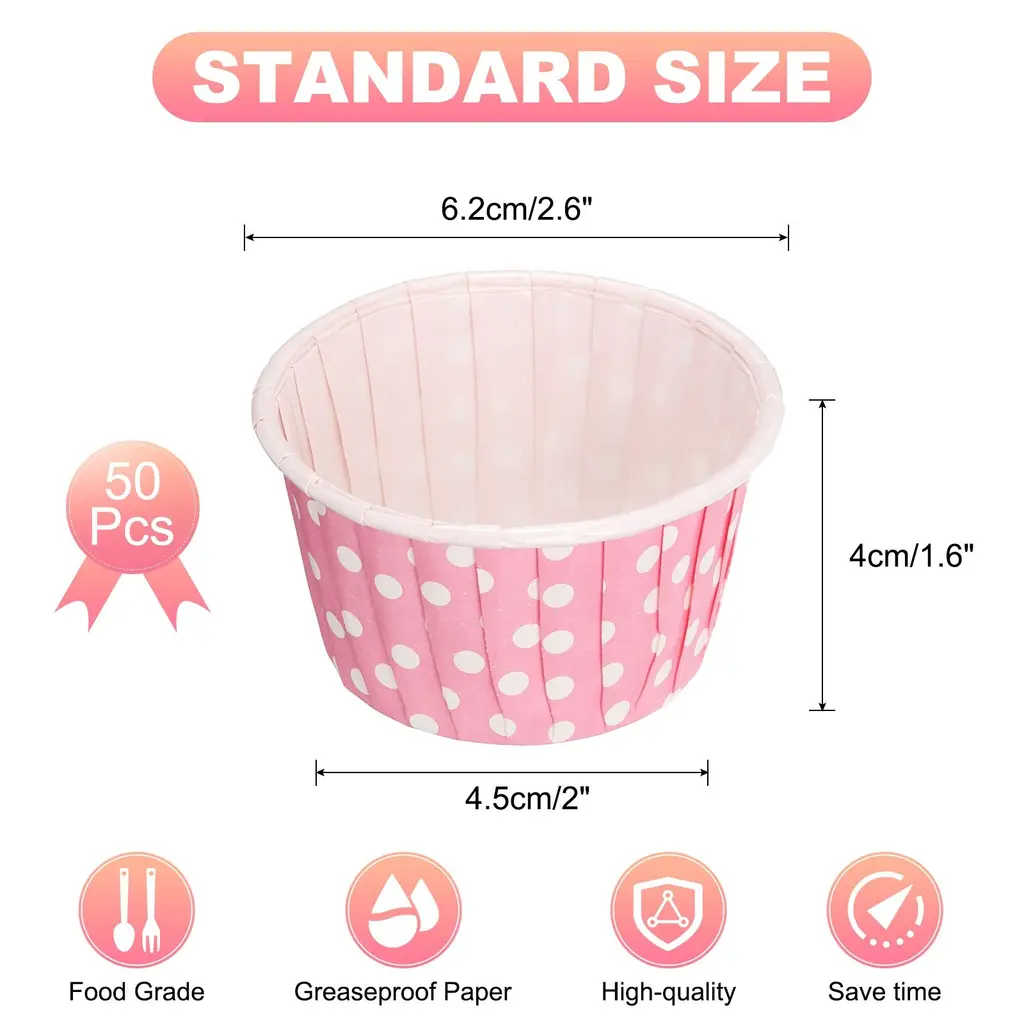 Paper baking cups are made of wood pulp and PE coating, sturdy and durable, can maintain a good shape during baking, provide support for cupcakes or muffins, and the outside remains bright and shiny when baking food.The cupcake liners are designed to be oven safe to 375°F and also suitable for microwave and freezer. It is perfect for different parties, birthdays, celebrations, baby-showers, weddings, Christmas, Halloween or Thanksgiving decorations, etc.With cute bright colors, cupcake wrappers are suitable for serving cakes, cookies, muffins, candies, nuts, pastries, ice cream and other treats, which can make your desserts, cookies and pastries more attractive and impressive.No baking pan or muffins pan required with these cupcake liners, just pour the batter into the cups, place on the baking pan, and bake and you can enjoy the delicious taste.