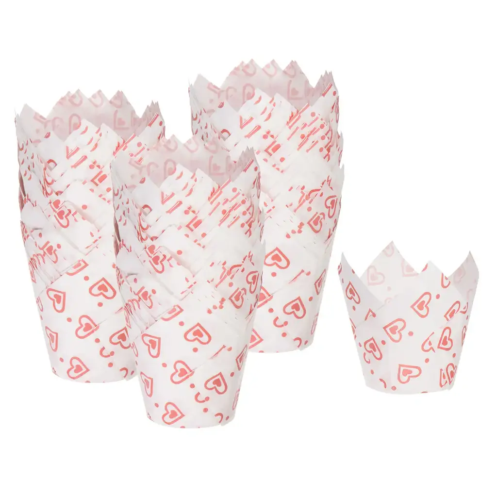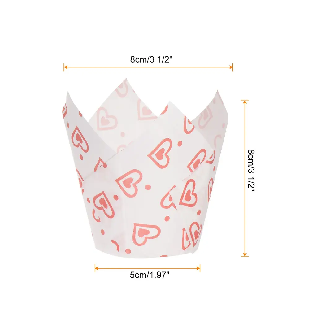 150pcs Tulip Cupcake Liners Paper Baking Cups White With Heart Pattern - White With Heart Pattern - White With Heart Pattern