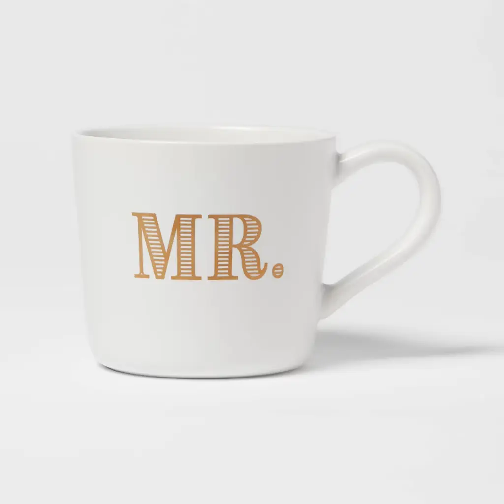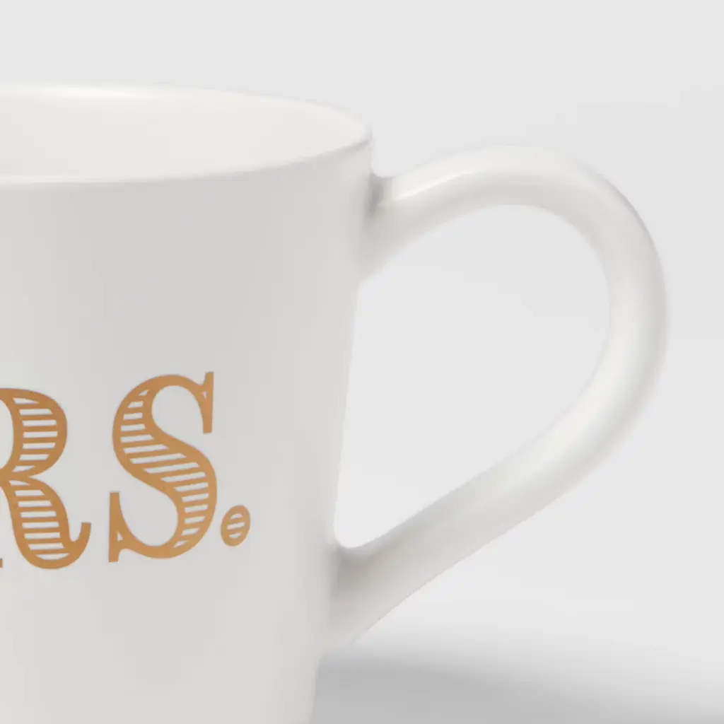 Add a personalized touch to your mug collection with this 15-Ounce Stoneware Mrs. Mug from Threshold™. Featuring an illustration of "Mrs." in gold, this white mug can be used to sip your favorite cup of coffee alone or with your loved one. Great to enjoy both hot or cold beverages, this stoneware mug offers quick reheating and cleaning with the dishwasher- and microwave-safe construction.