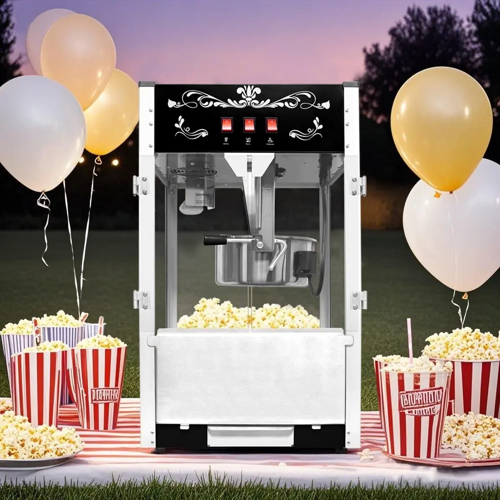 16 Oz Countertop Popcorn Maker With Stainless Steel Scoop, Oil Scoop And 3 Popcorn Cups For Home, Supermarkets, Movie Theaters - Black