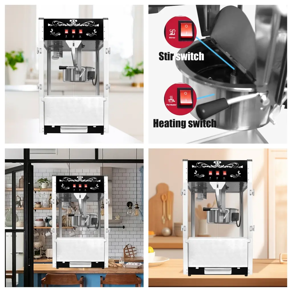 16oz Commercial Popcorn Machine W/scoop, Oil Spoon & 3 Cups,countertop - Black
