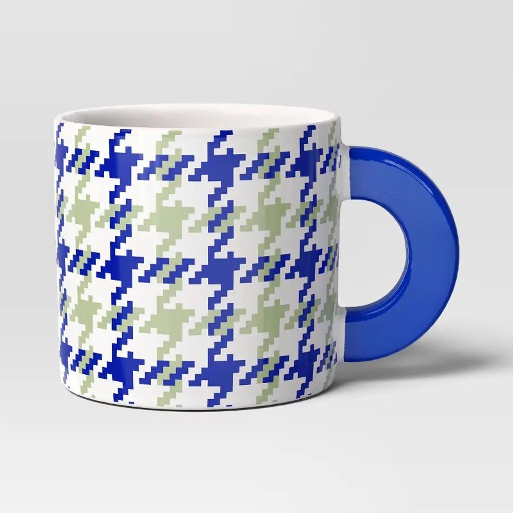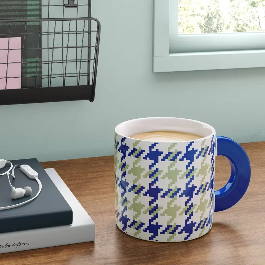 Enhance your drinkware collection with this 16-ounce Stoneware Cobalt Houndstooth Mug from Room Essentials™. This coffee mug features a cobalt houndstooth pattern on a white backdrop that adds a touch of classic elegance. Made from stoneware material, this 16-ounce mug is great to sip hot and cold beverages — from iced tea to freshly brewed coffee. Plus, it is both dishwasher and microwave safe for quick cleaning and reheating. Room Essentials™: Everyday Value