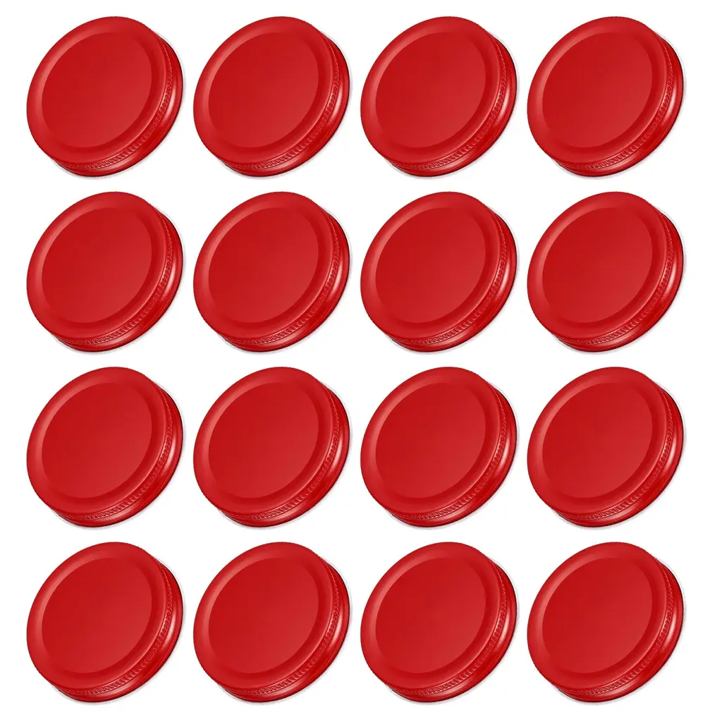 Description:Material - Constructed from a thin steel plate as the substrate, tin plated on its surface and multi-protective films(layers). With corrosion resistance, odorless, glossy surface, lightweight and strong adaptability to ambient temperature.Airtight & Leakproof - Designed to fit standard mouth mason jars. Our jar lid with a gasket which can improve the sealing of the lid, keep food fresh longer, not easy to leak, and prevent bad odors.Vertical Stripe Design - Concave-convex design with vertical stripes to increase friction between palm and lid, and facilitate opening and closing.Washable & Reusable - The canning lid is washable and suitable for the dishwasher. Please wash the lids before use and it is better to dry to store them as soon as possible, in order to extend service life and not easy to rust.Wide Applications - Commonly apply on mason jars for dry or liquid sealing and storing, such as grains, sugar, flour, juice, fruits, salad, sauces, spices, jams, etc. As well as for making DIY projects, seasoning caps, handmade decorative chandeliers, small items storage and more.Specification:Material: Tin PlateColor: RedInner Diameter: 70mm/2.76-inchLid Height: 15mm/0.59-inchPackage Contents:16pcs x Mason Jar Lids