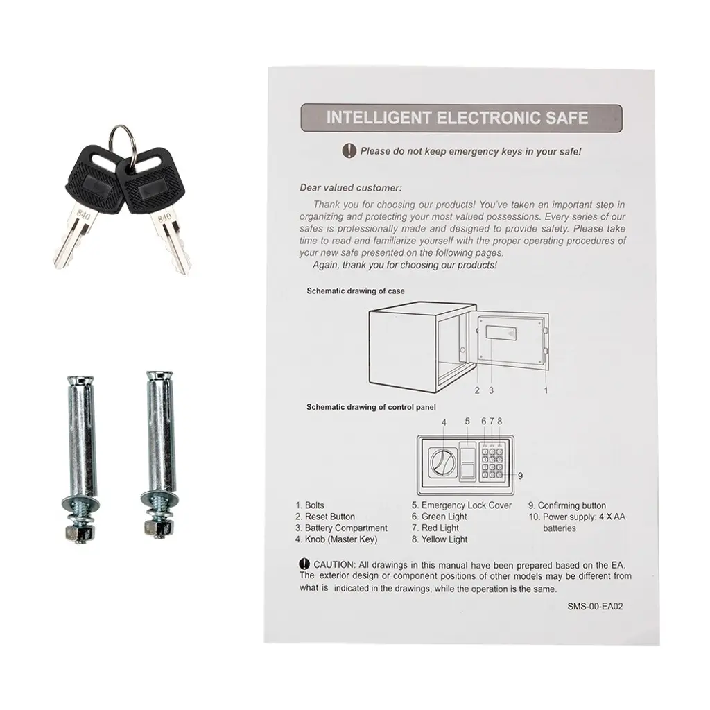 Specifications:Introductions:Do you want to get a highly reliable safe box for storing your cash? What we particularly recommend you is this 17E Home Use Electronic Password Steel Plate Safe Box. Made of high quality steel plate material, this safe box is in high strength and solid structure, really durable to use. Adopting highly advanced technology, it supports password function, easy to be stolen by others. Durable outer cover is wear-resistant to use. It also supports password reset. Such a compact-sized item is room-saving! Don't lose the chance!Features:Note: