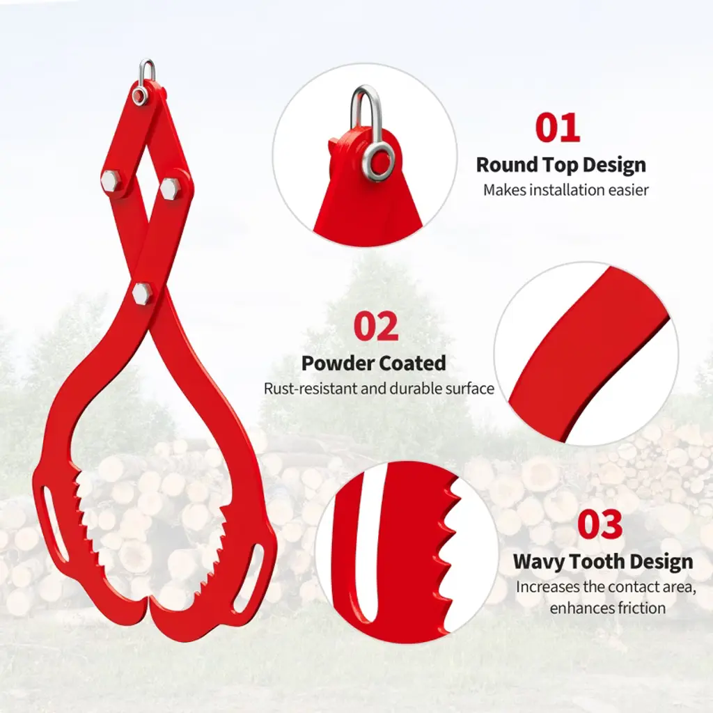 Key Features :Steel Construction - Reinforced double-bar design with powder-coated finish resists rust and scratchesAdjustable Jaw Opening - Anti-slip teeth securely grip logs of varying sizes (ideal for firewood handling)Vehicle-Compatible Hook - Integrated suspension loop chains to tractors, ATVs or trucks for easy transportReduced Manual Labor - Safely move heavy logs without straining - works with forklifts and buggiesAll-Weather Durability - Thick steel construction withstands rugged outdoor use season after seasonTechnical Specifications:Material: heavy-duty steel material with red powder coatingJaw Width: Adjustable up to 18/28/32 inchesIncludes: Integrated tow chain hookBest For: Firewood, logging, forestry work